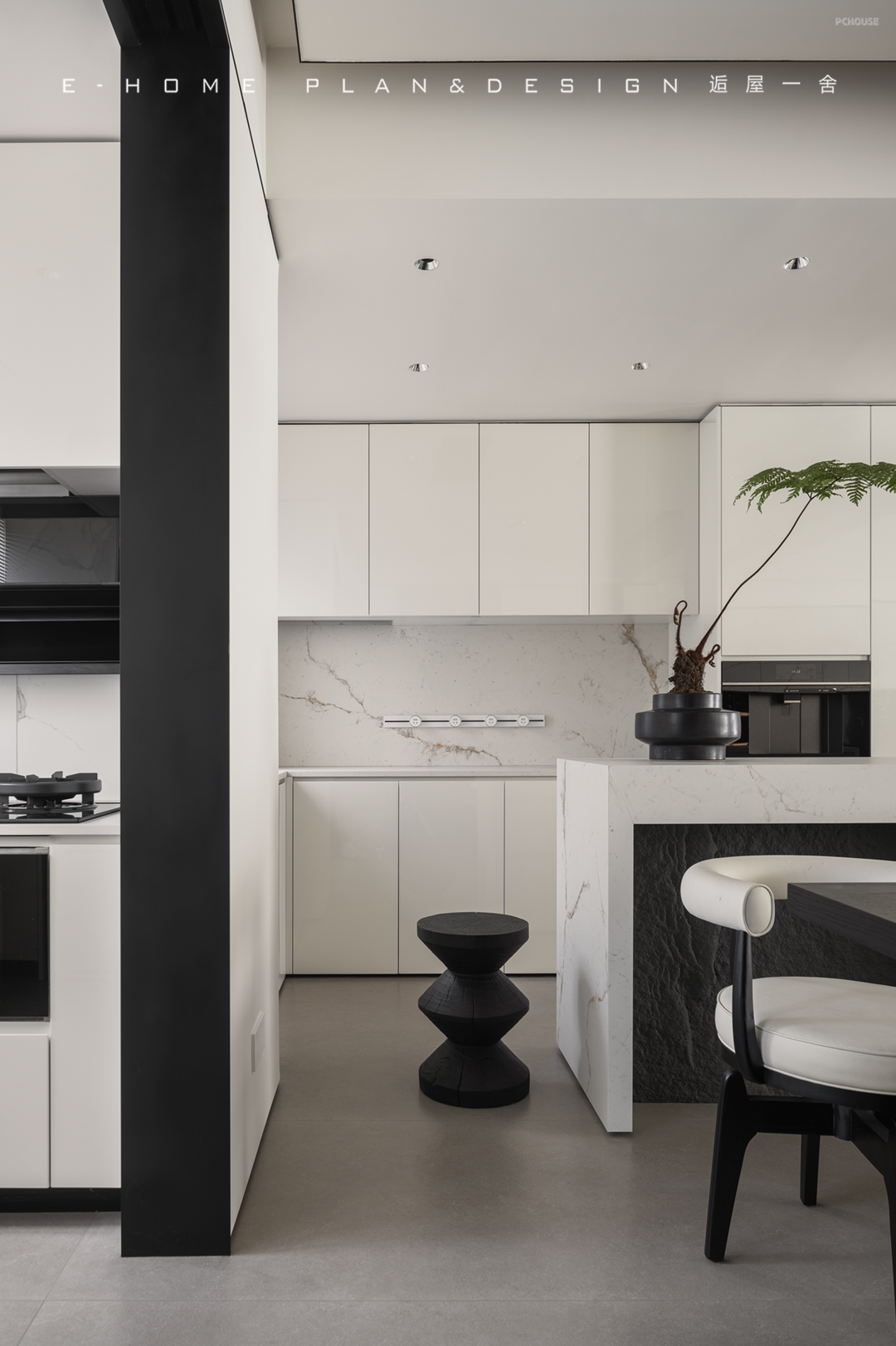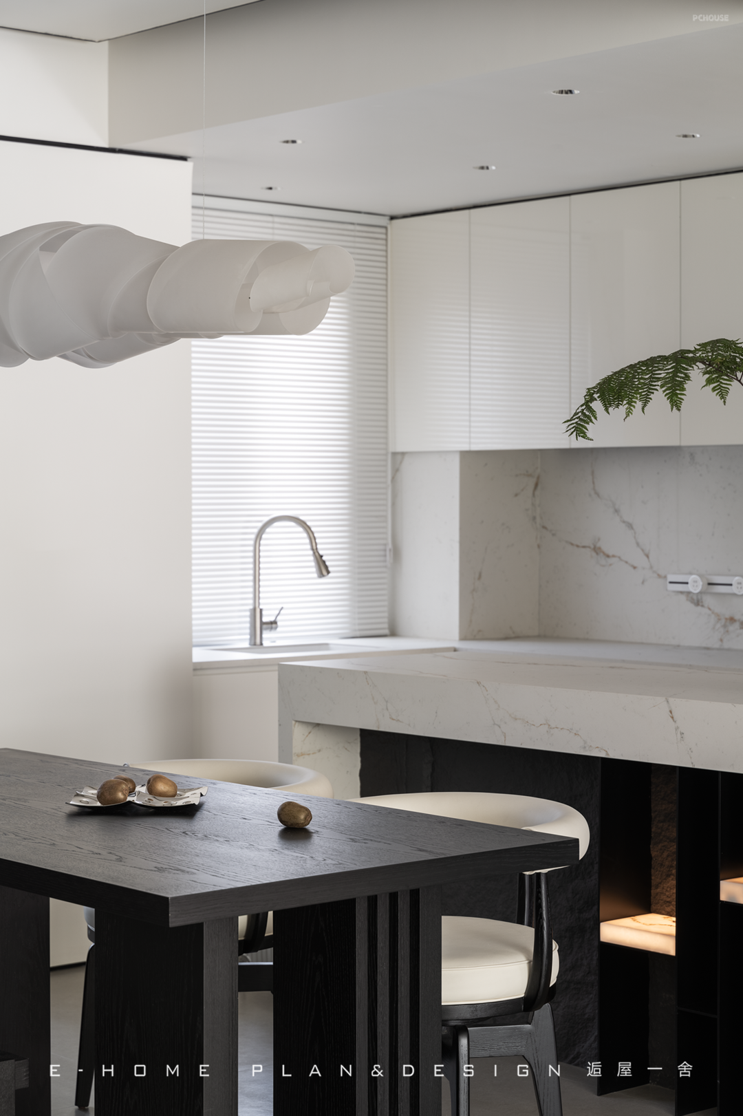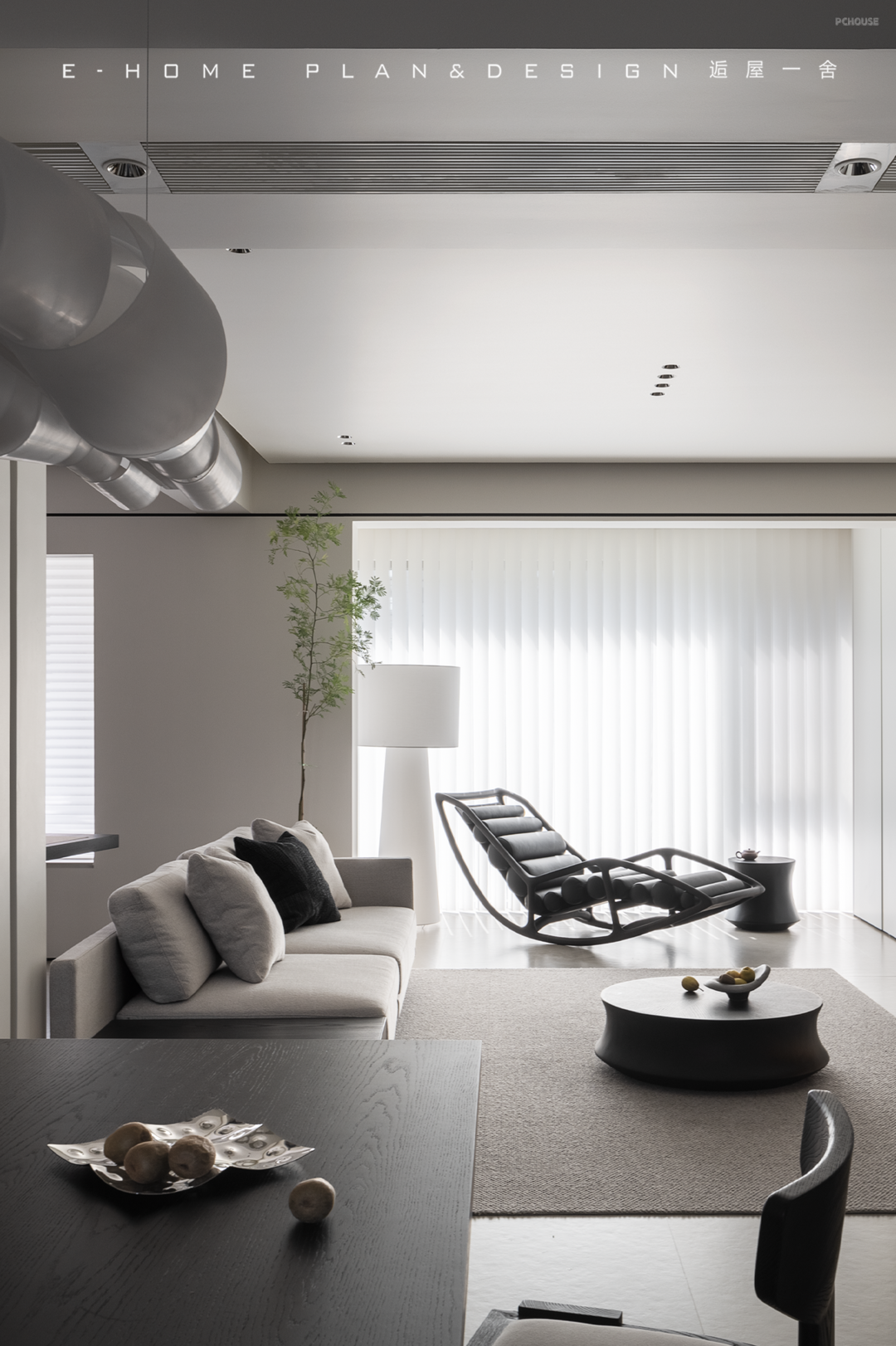 只是因为拆了一面墙,光影扶疏的画面就全部涌进客厅,房子表现出的敞亮性格让来访者放下拘谨,屋内的材质避免流光溢彩,不喧闹,在正式待客中又保留属于家人的轻松氛围。