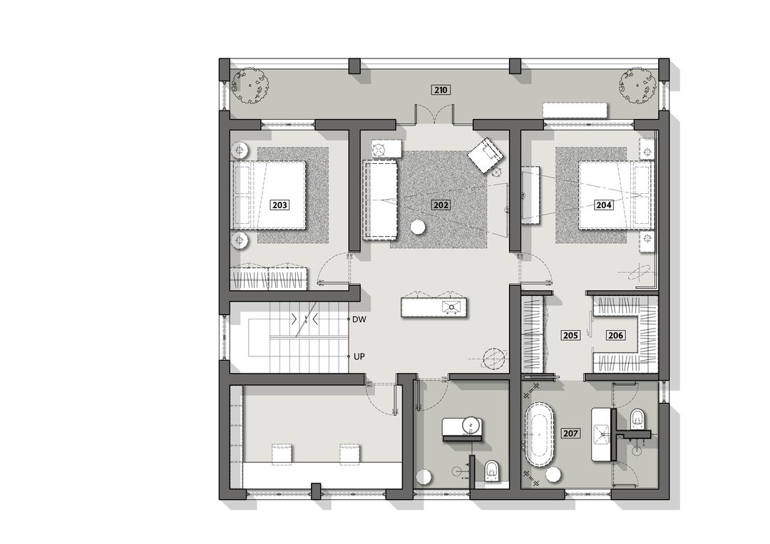 远离喧嚣城市而偏安乡村一隅,宁静而广袤的周边环境,基于此我们在室内空间营造上同样抒发这种情绪上思考。