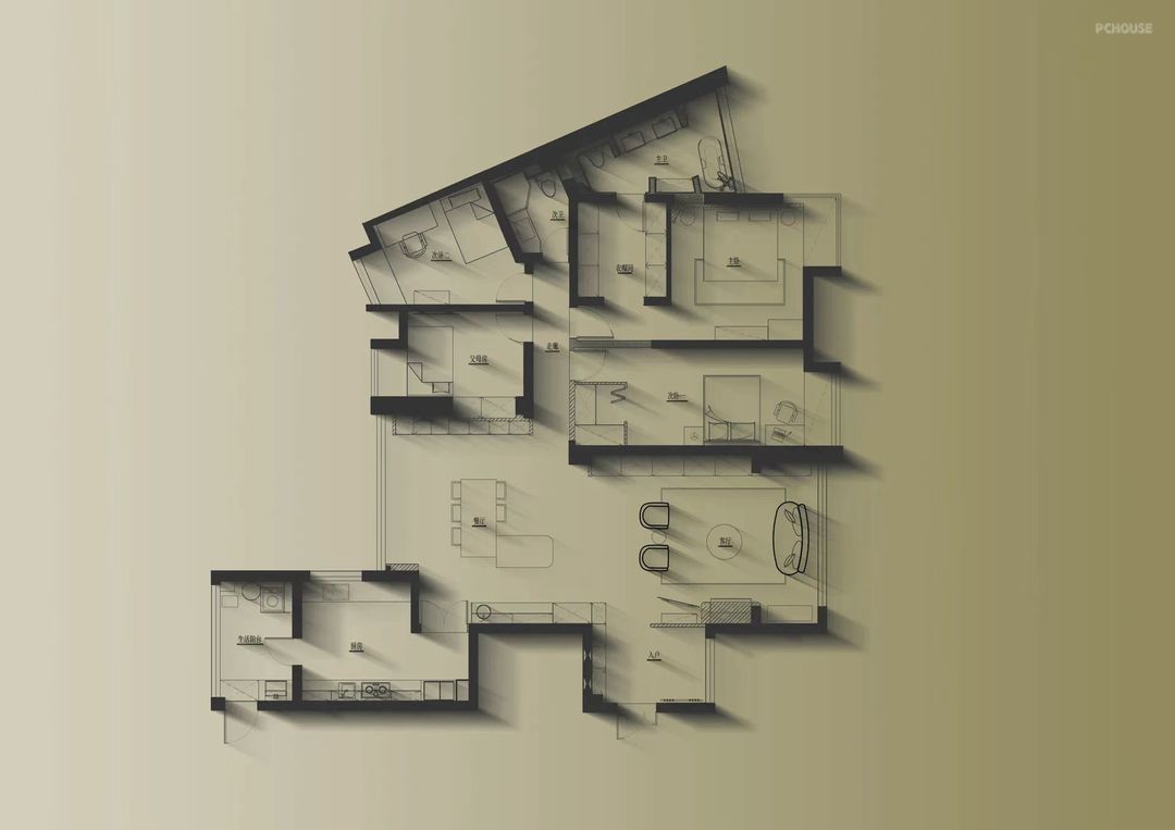 于是,设计师从内部结构下手,重新为空间梳理了一遍功能分区,厘清彼此间的关联后,就大刀阔斧地……