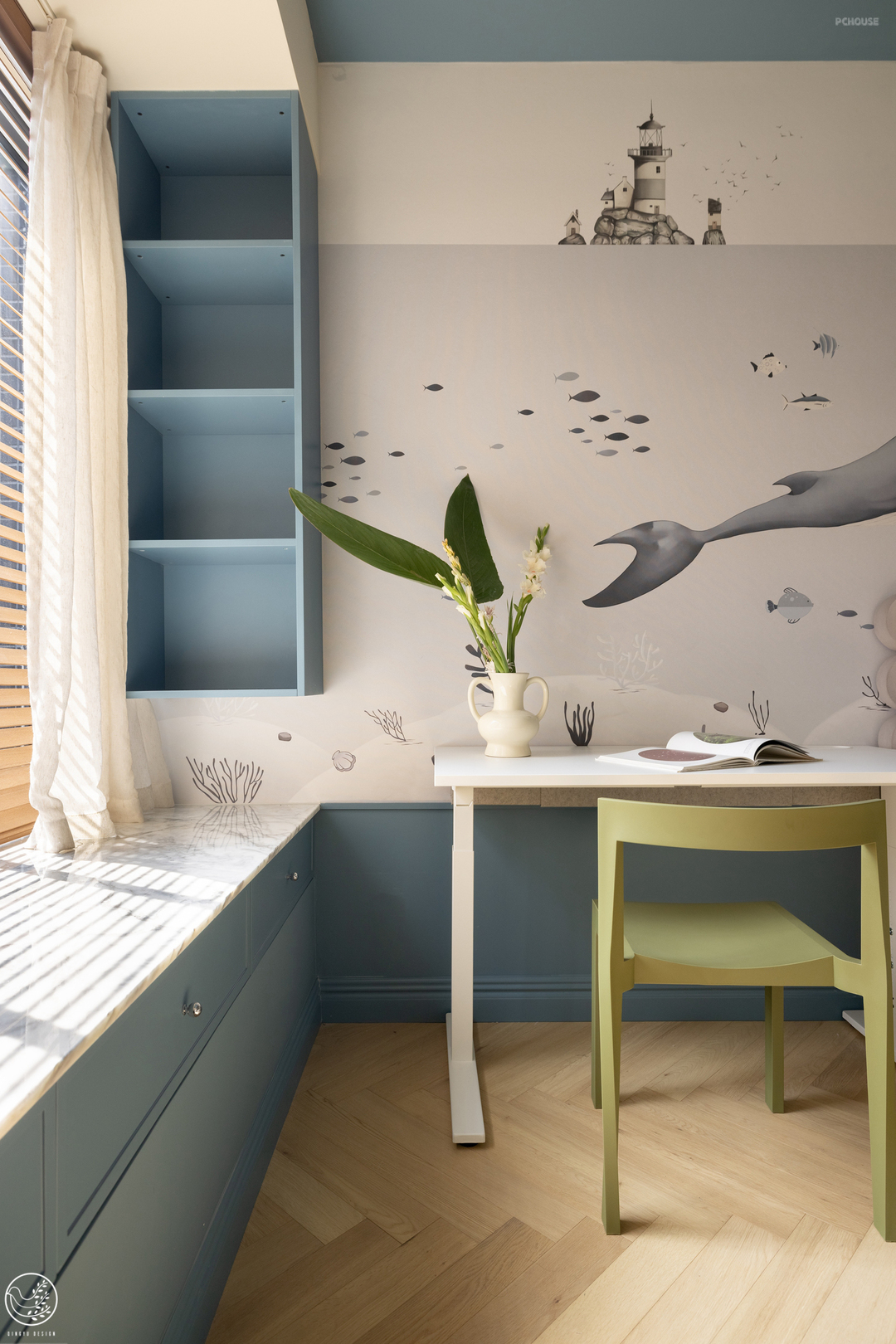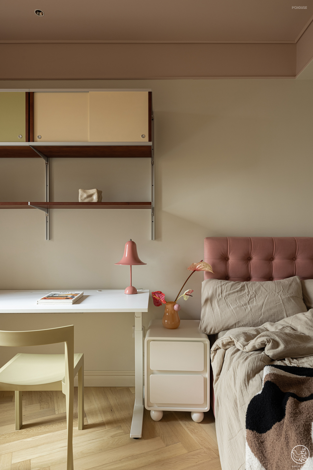 比如留了一个大桌子给她放电脑,用更淡雅但不失甜美的粉、黄来描绘少女初长成的恬淡优雅。