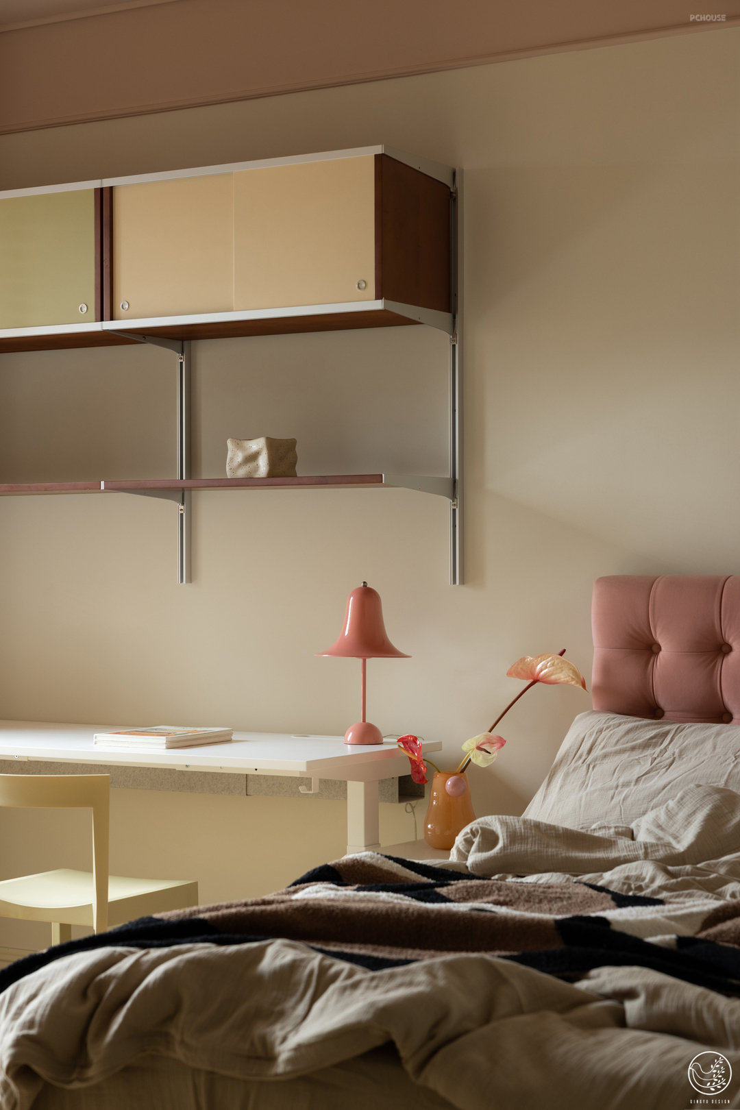 尽管姐姐以后会搬出去独立生活,但是妈妈还是希望为她好好的保留一间闺房。于是,改造就在姐姐以前的房间里来进行。设计师小心地留存了一些时光的痕迹,但更多还是根据她现阶段需求来打造的。