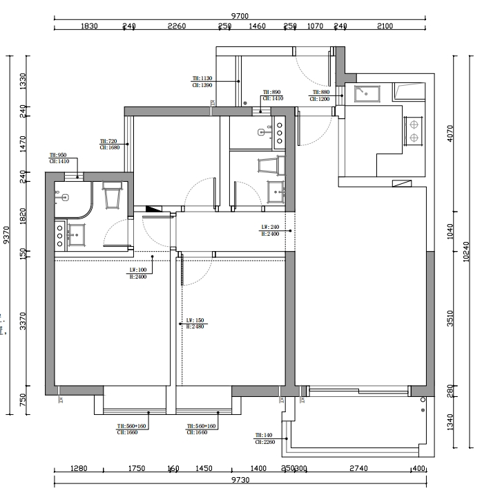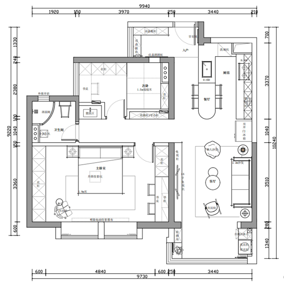原户型问题:客户喜欢下厨做美食,但觉得厨房太小,无法满足两口子互动需求;风格上喜欢简洁干净,原有收纳不够;原有的精装房质量太差;