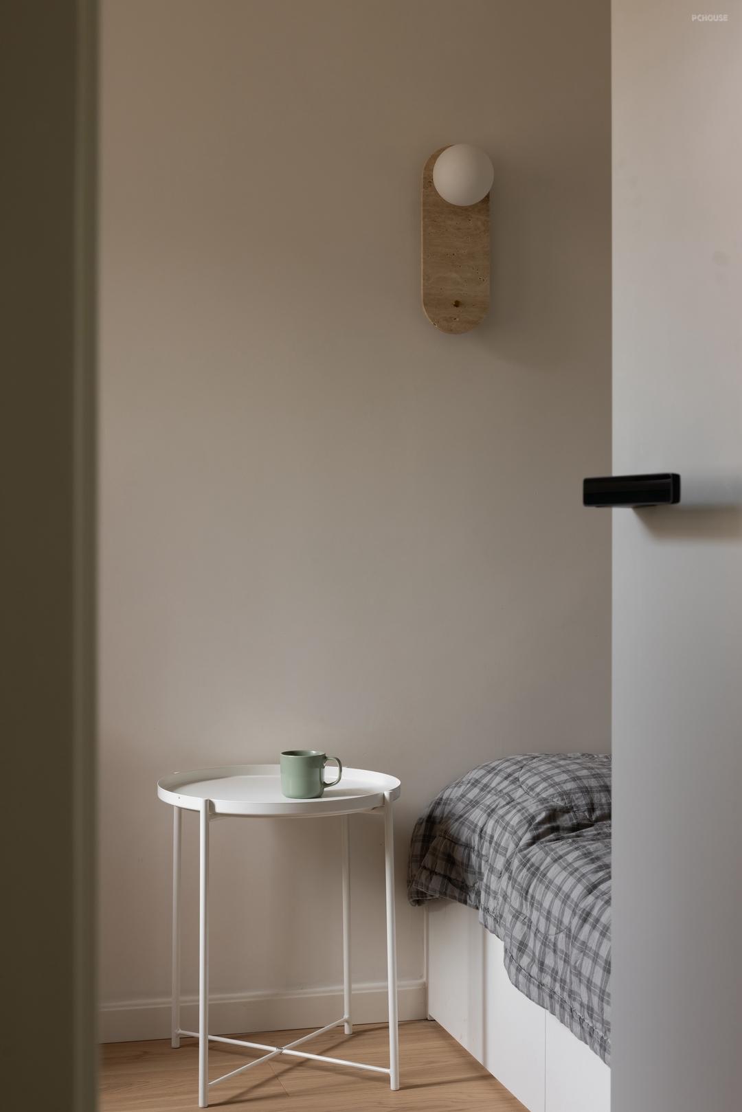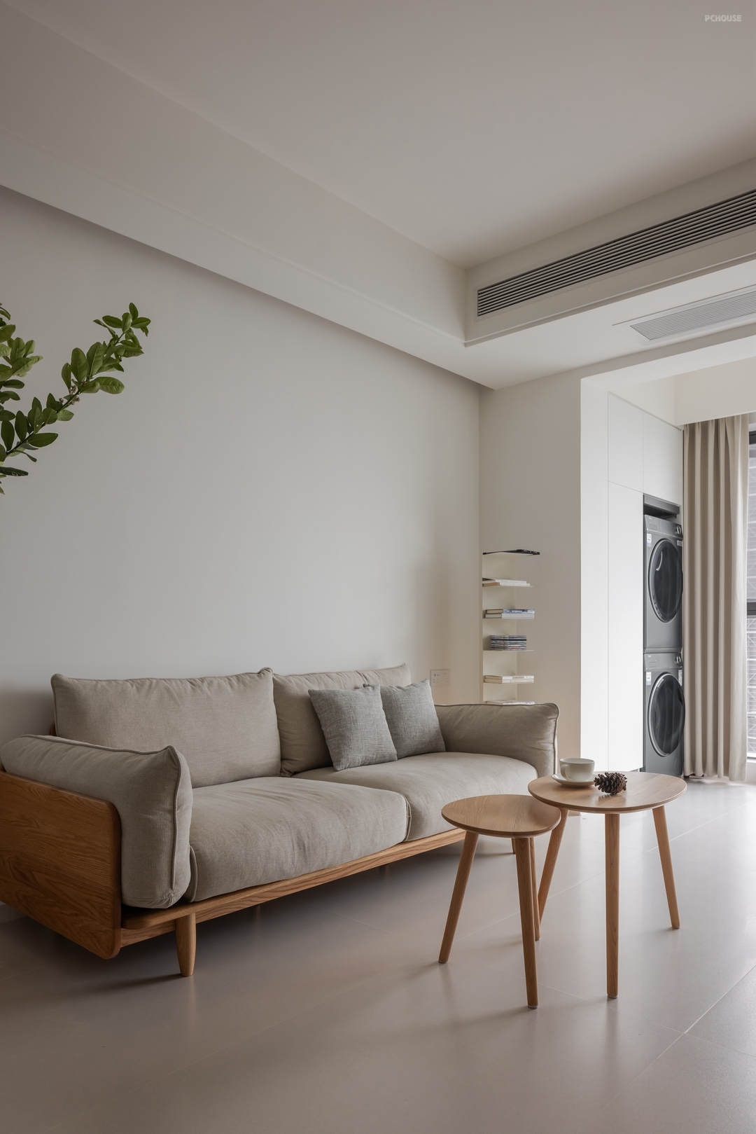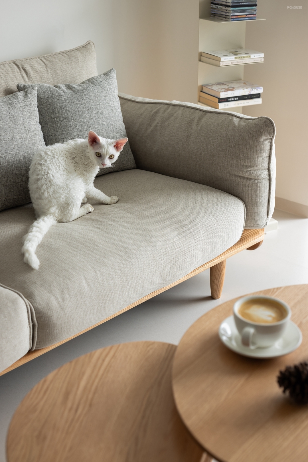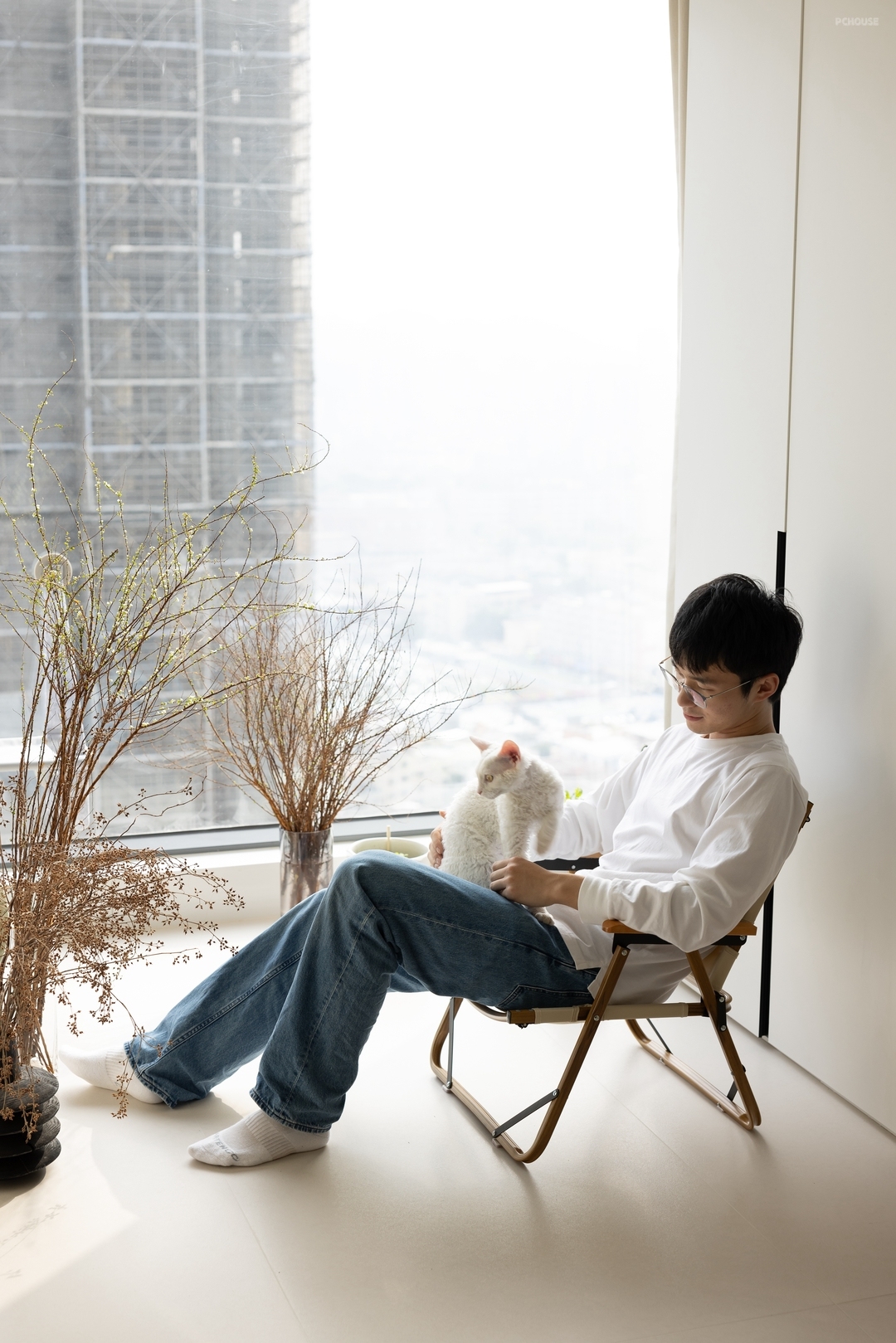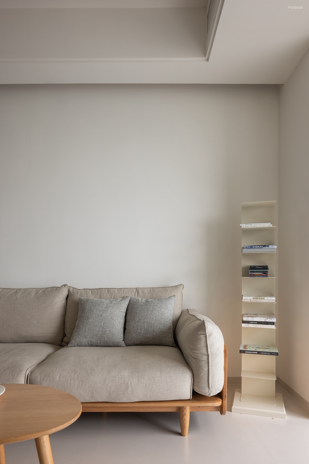 业主一回到家,就能释放一整天的压力,无论是作为边几的书架,电视柜上摆放的游戏机,或者侧面冰箱贴上琳琅满目的回忆照片,都能让全身的疲倦一扫而尽。