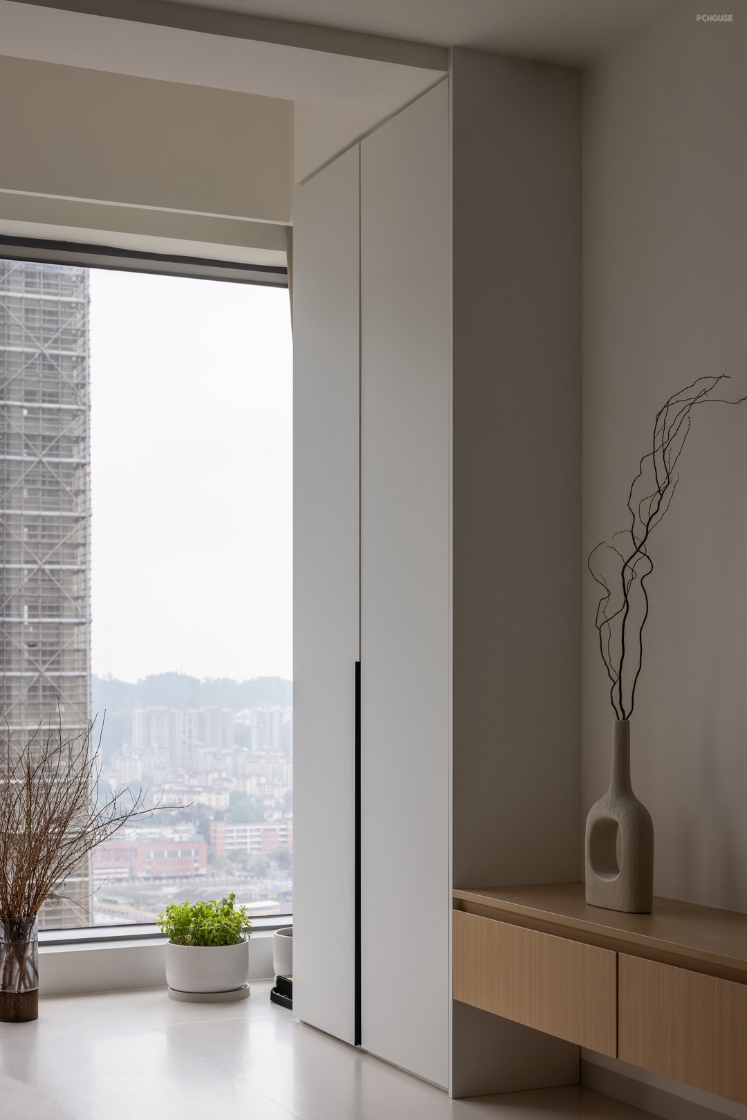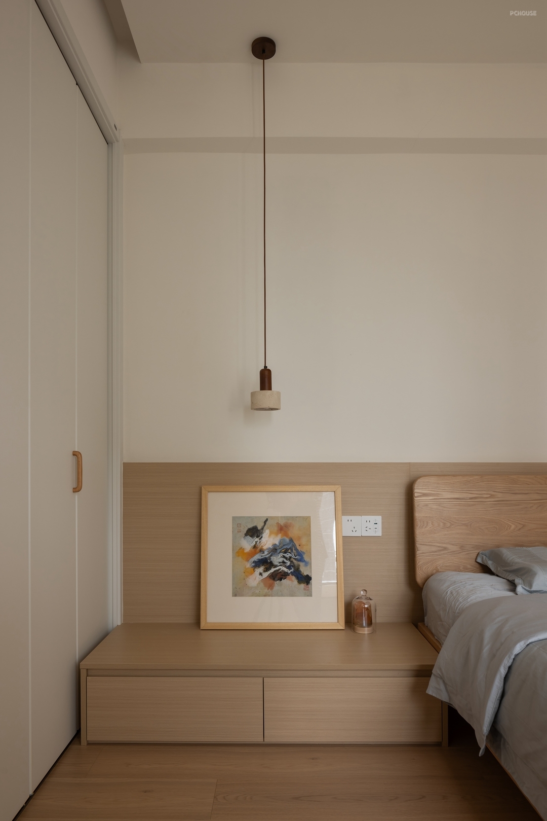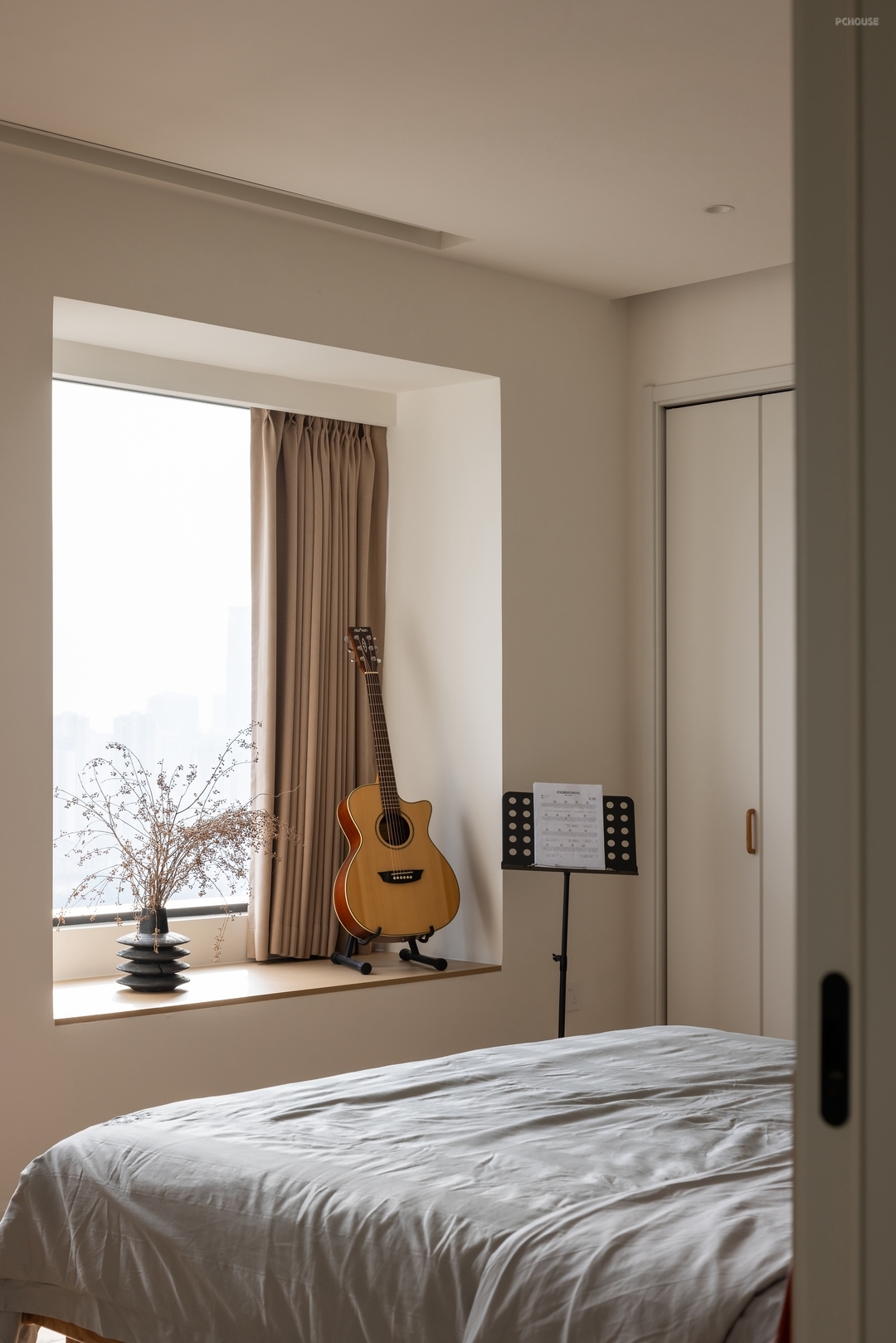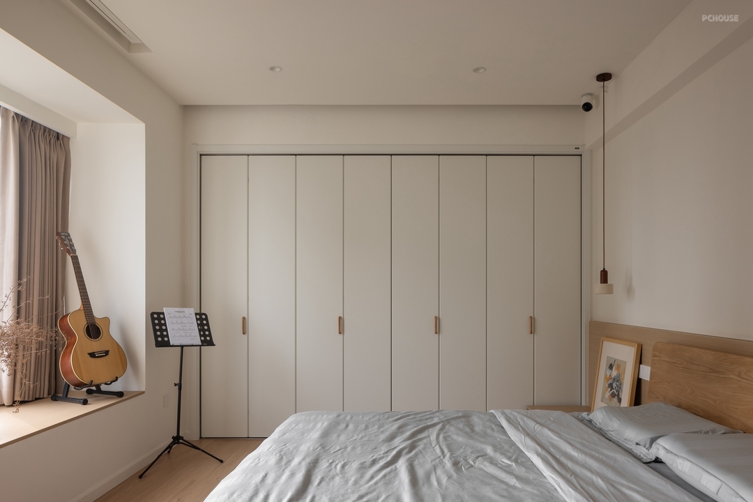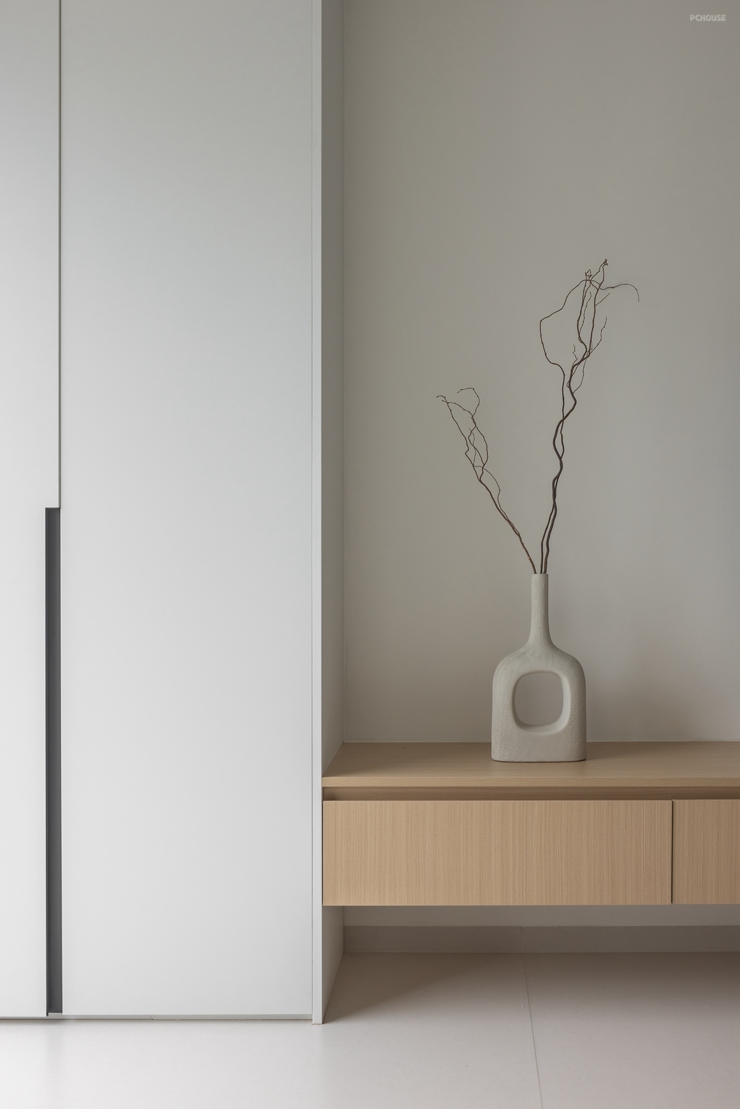 业主一回到家,就能释放一整天的压力,无论是作为边几的书架,电视柜上摆放的游戏机,或者侧面冰箱贴上琳琅满目的回忆照片,都能让全身的疲倦一扫而尽。