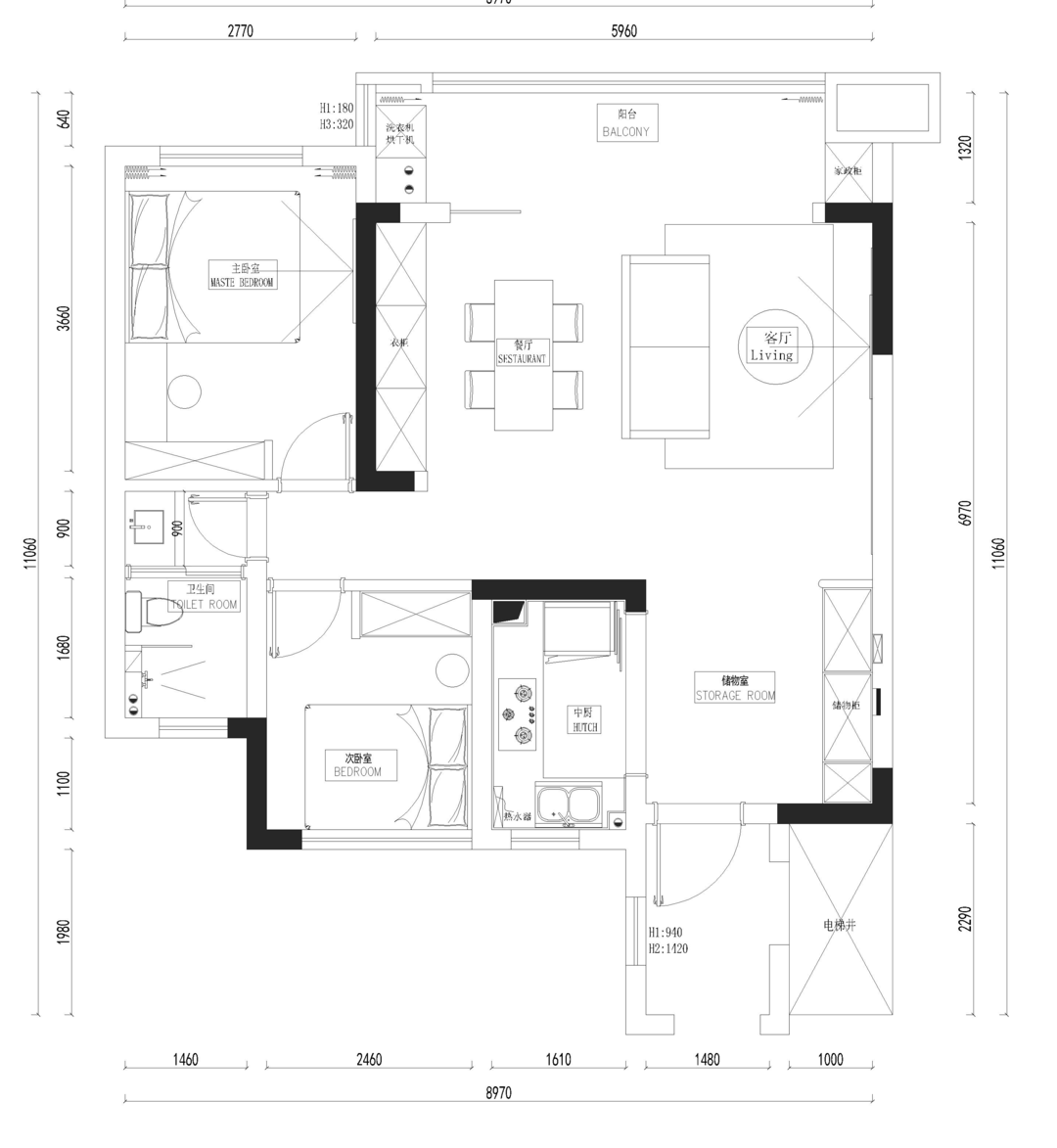 房子面积100㎡,设计师将空间分为,公共休闲区以及睡眠区,在100㎡中,设计师重点为客餐厅做了大面积的设计,敲掉一个房间,得到一个大的客餐厅,同时把收纳空间也重点转移到公共空间中;