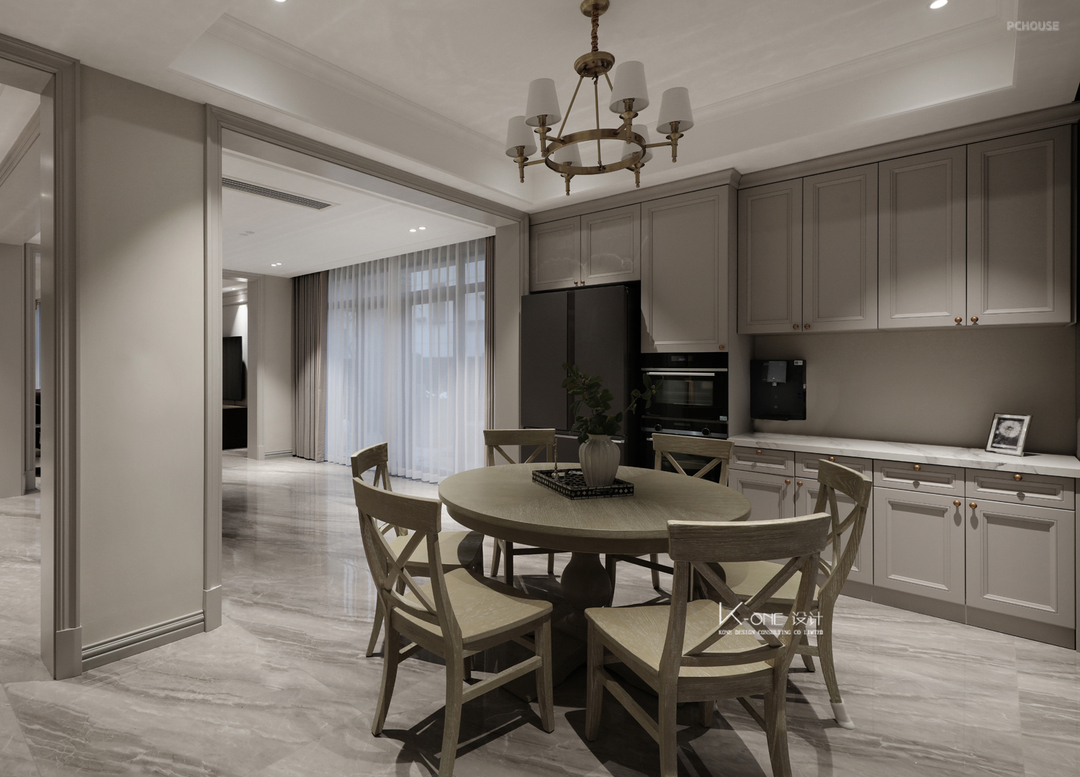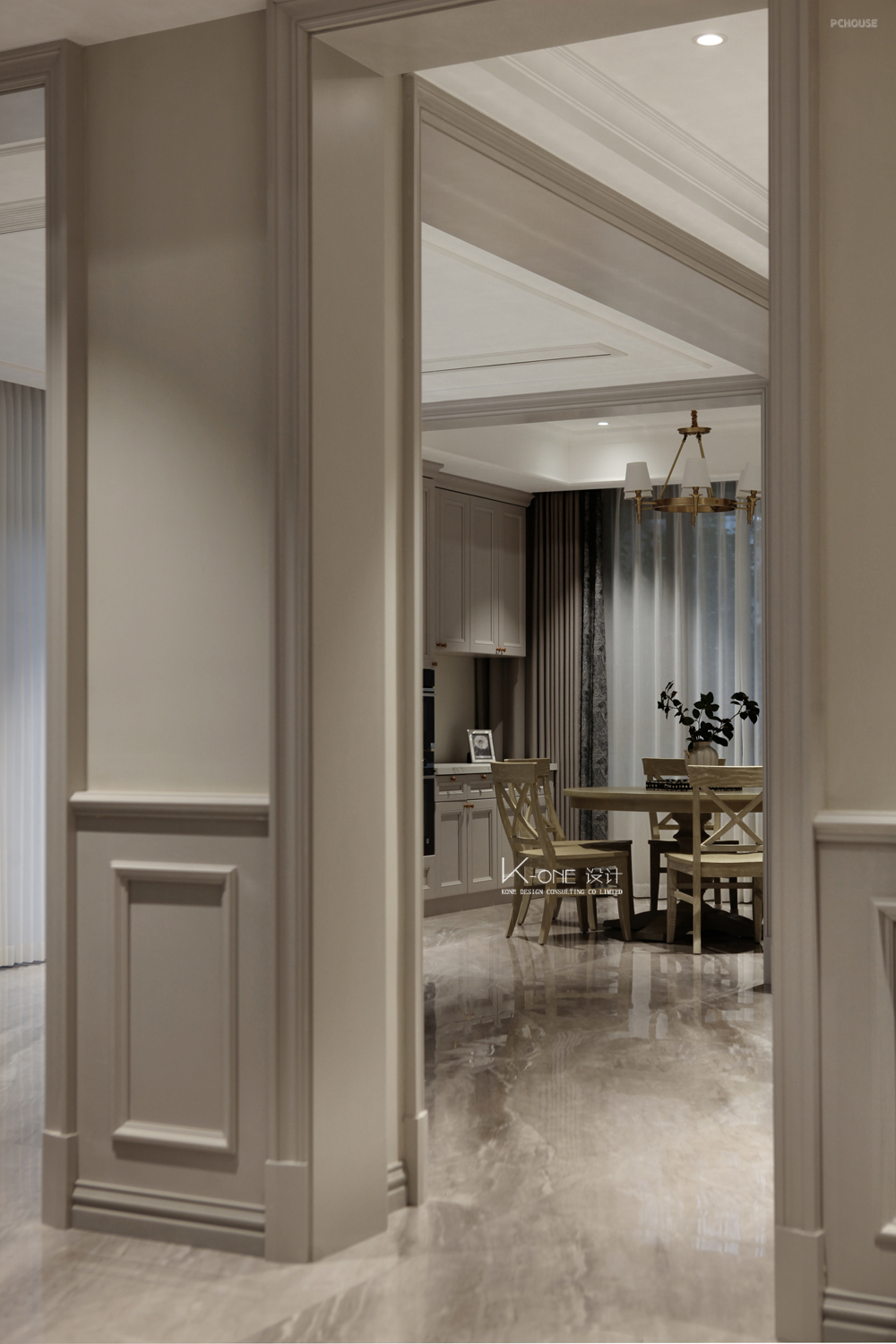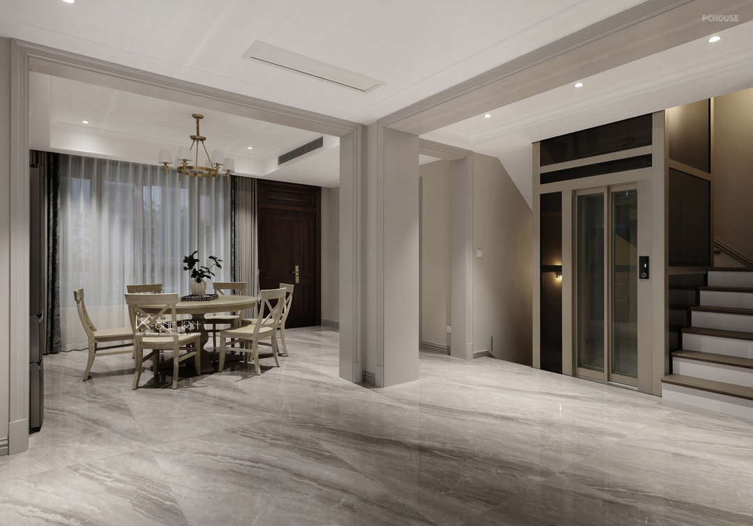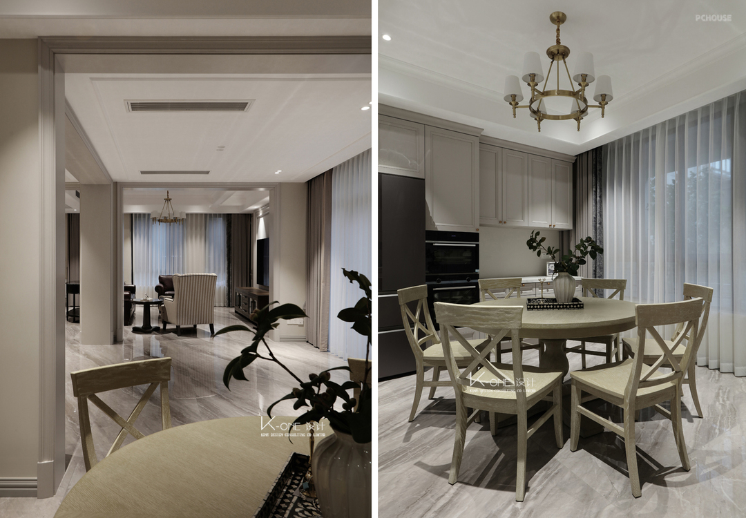 一场张弛有序的空间叙事由进入至客餐厅开始,一层作为公共区域,为业主提供了足够开放和灵活的空间。并将入户空间客厅范围,形成一个宽绰、流畅的奢华尺度,尽显墅居生活魅力。