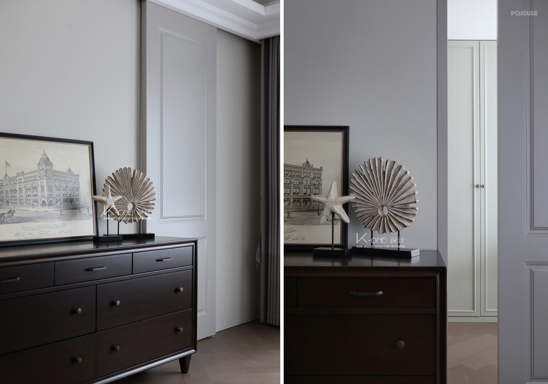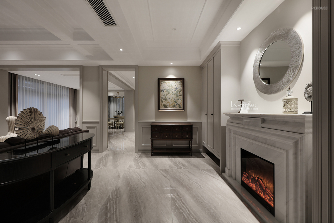客厅的家具同样摆放有序,每一个定格的画面都值得细细品味。角柜好看又实用,和挂画、旁边的壁炉一起,好像把时光拉回到了过去的某个片段。