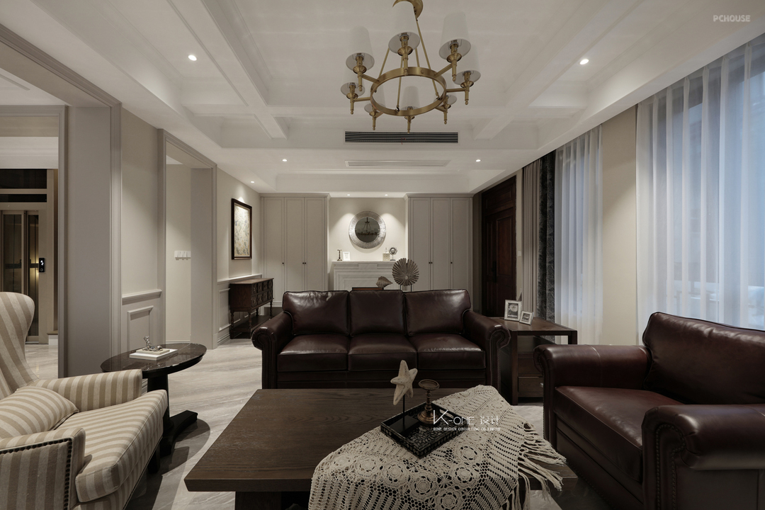 沙发区采用围合对坐的布局方式,这样的设定也能增强一家人的交流互动。