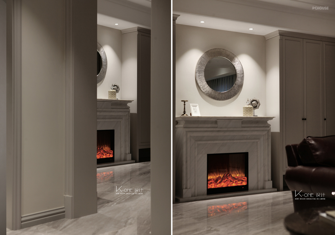 壁炉上方的装饰圆镜是屋主的收藏,放在这边作装饰毫无违和感。温暖的炉火可以让人放松身。冬天坐在壁炉旁边看书或者与家人聊天。听音乐。看影片,都会让人觉得非常舒适和惬意。