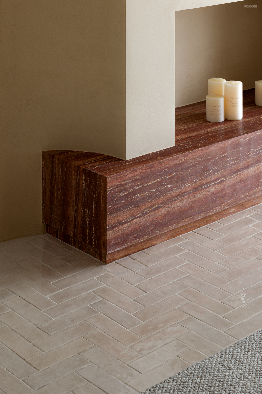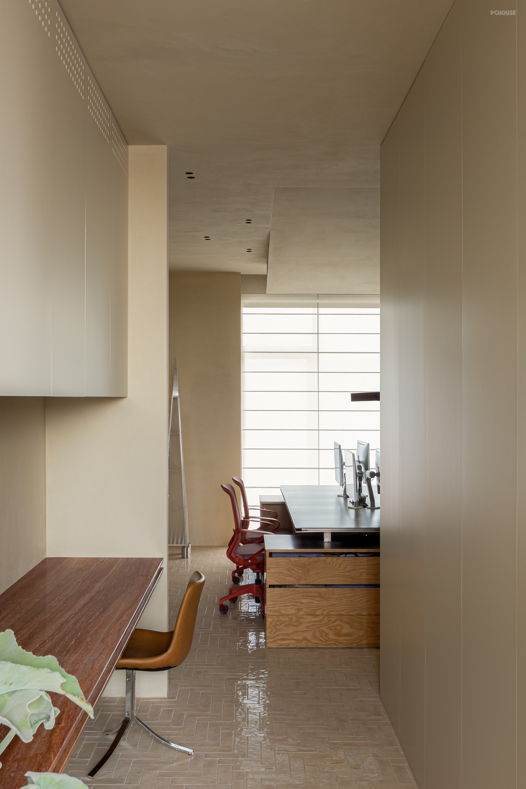 地面手工釉面小砖铺设的效果,并用桦木,藤编,金属的点缀。让办公空间增加一些怀旧与破碎的氛围之美。