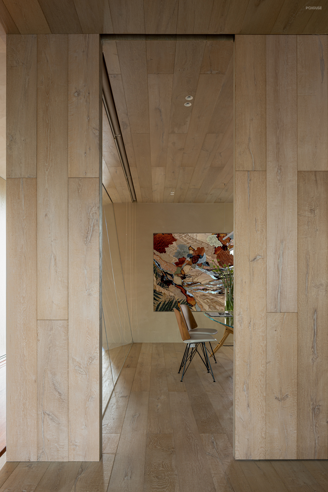 关于前厅,我们不希望它是静止的。它应该是能所流动的,能跟四季变化所相交接的。所以我们安设了巨型尺寸的led电子屏幕。它可播放我们的作品照片集,又能以各种美景视频呈现。