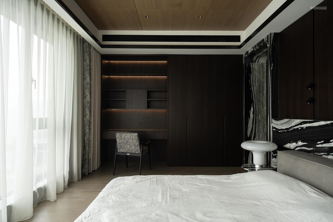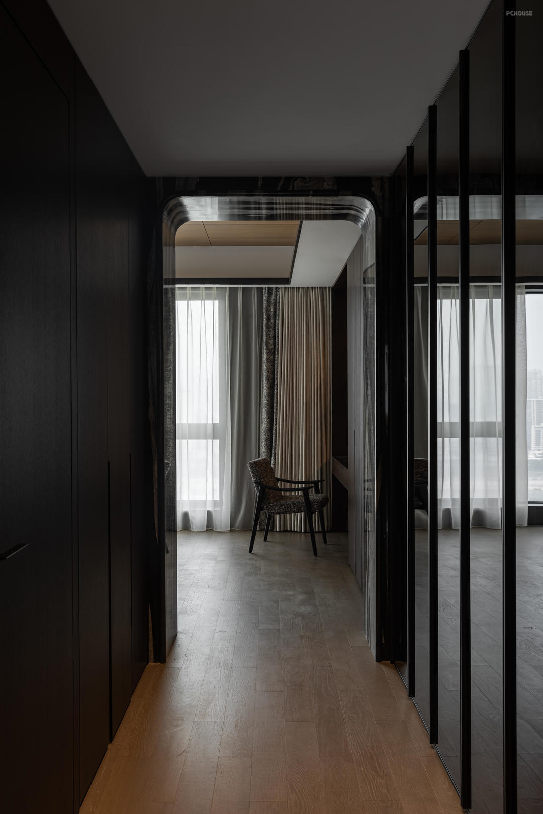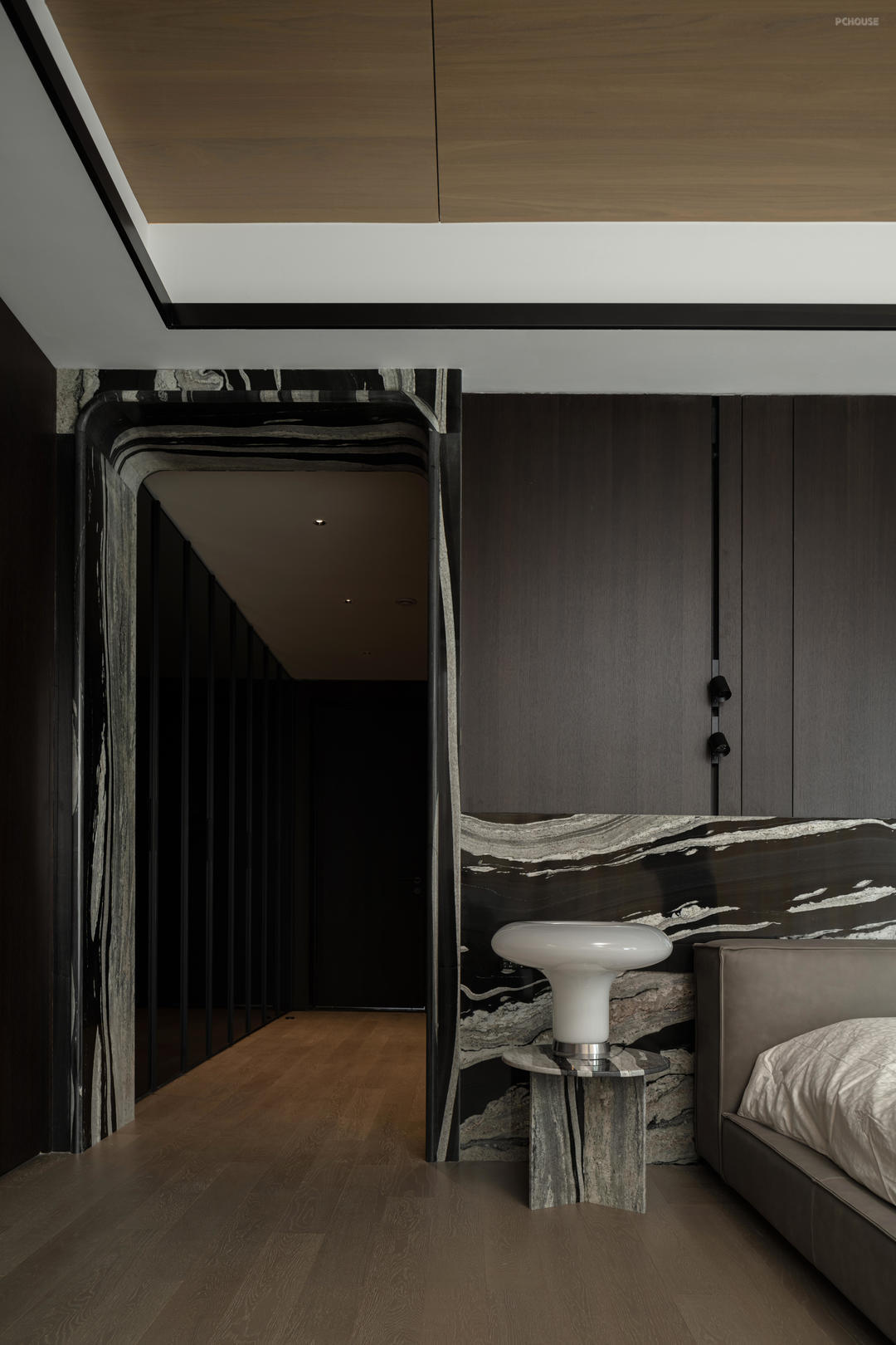千里马大理石门框,流动纹理天然生动,与深色木质形成视觉重点。简约大方,自然元素融入内室,彰显东方天人合一哲学。柔和阴影,孕育私密舒适的卧息空间。