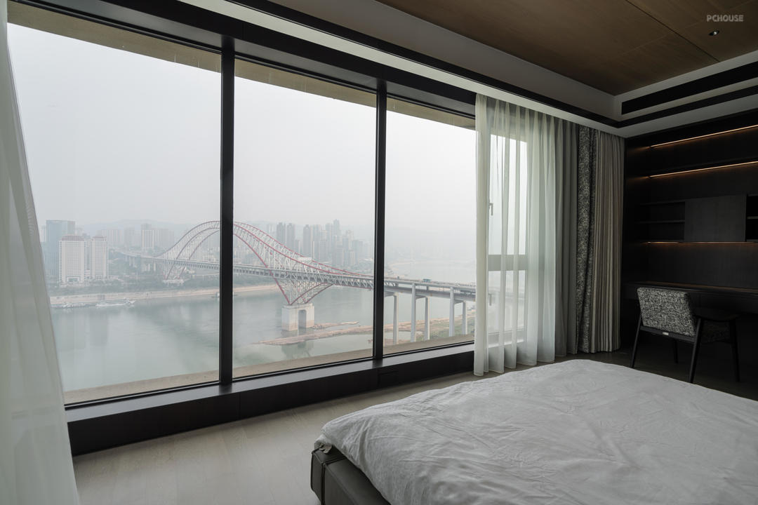 落地玻璃窗外,江面雾气氤氲,朝天门大桥桥梁的轮廓在薄雾中若隐若现,宛如一幅水墨画卷徐徐展开。雅致的装潢与江面雾气相得益彰,将这份朦胧之美凝聚成一种文雅旖旎的意境,只待那缕暖阳将它渲染得更加生动有致。