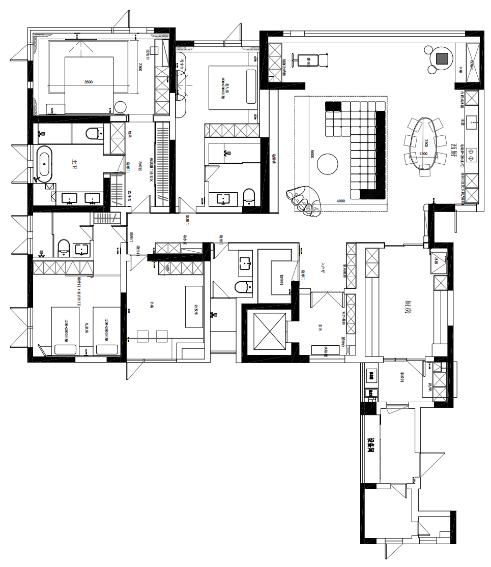 射灯如星辰点缀木帏,落地灯闪烁静谧的光芒,如盏盏孤灯相伴慰藉。多重光影交错勾勒,营构出一室梦幻之境。这般匠心独运的无主灯设计,将光影的艺术诗意彰显无遗,引人沉浸于光的海洋,徜徉于灯火之夜的无垠韵味。