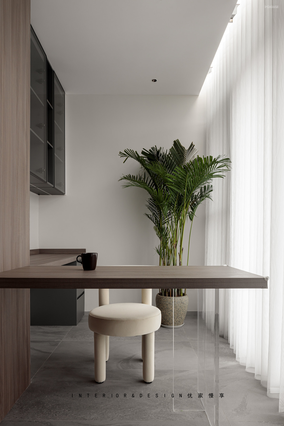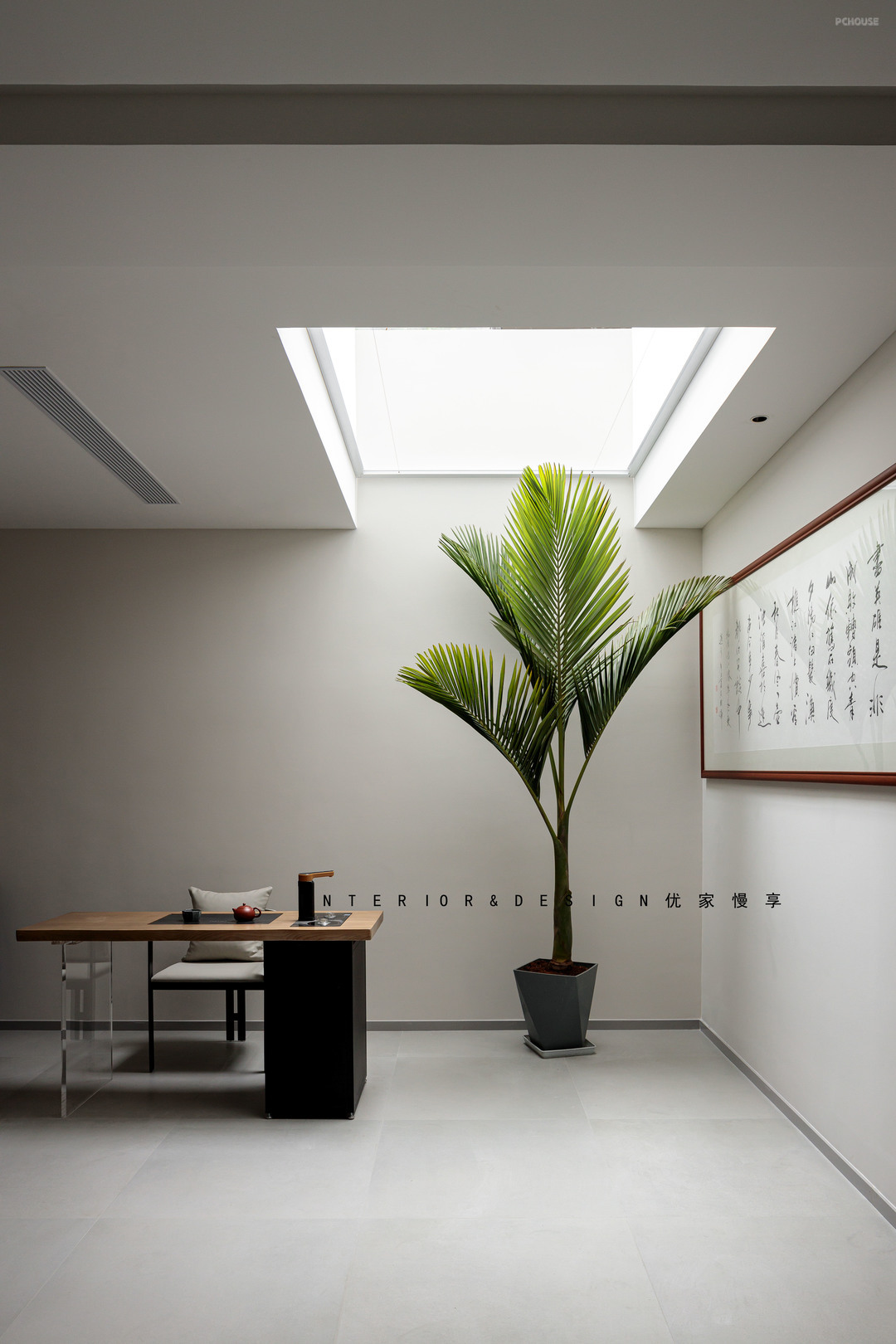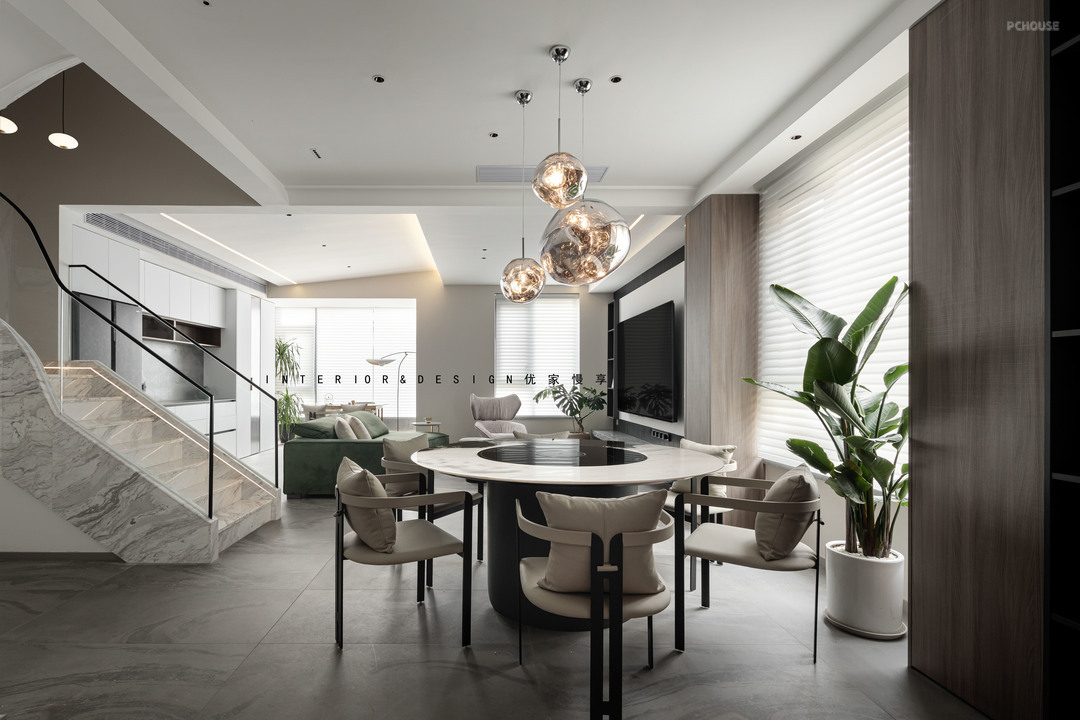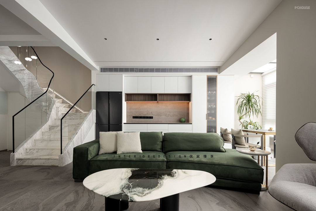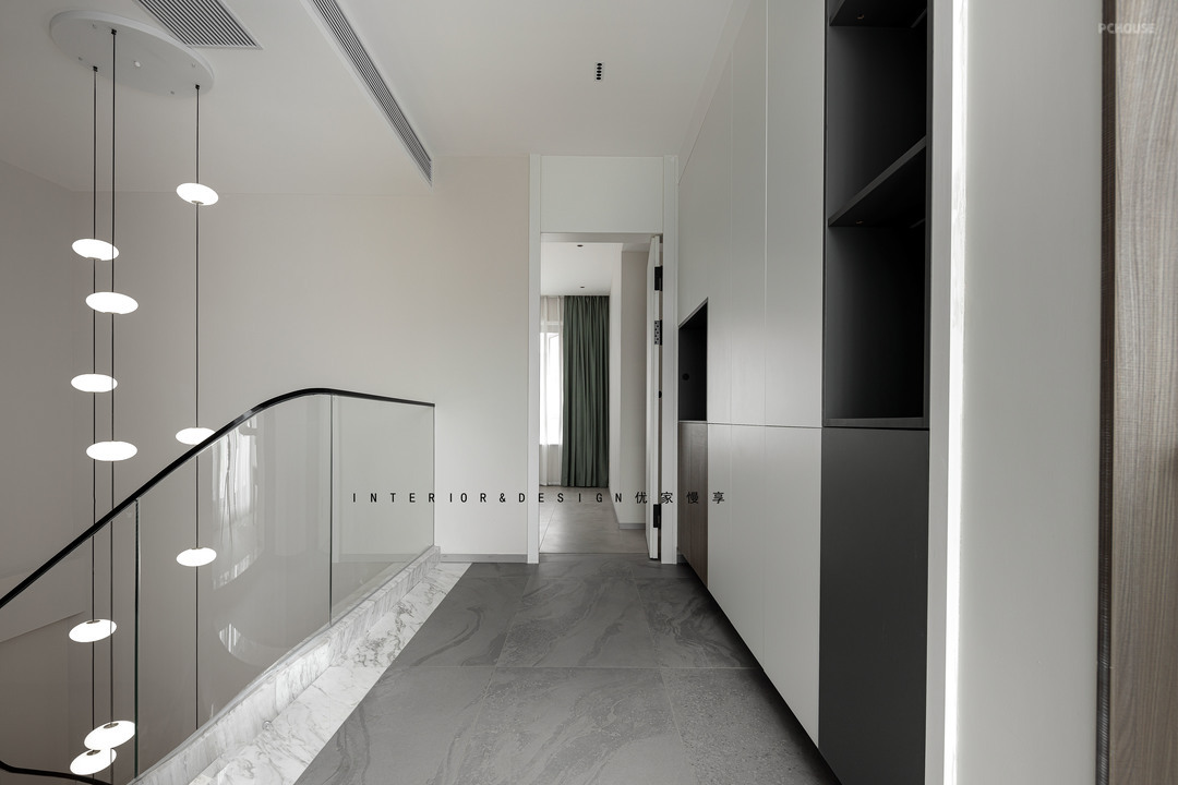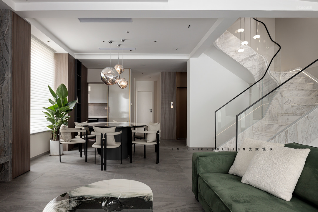 前言: 本案为多人口结构的家庭。家庭男性成员居多,还有一条帅气的马犬,拒绝网红的奶油风,利落的阳刚之气满足了男性的审美。整体的设计考虑上,在一楼设计了洗衣及晾晒区域,方便家里所有成员使用。客厅配置了茶室功能,满足会客需求。 二三楼设置成休息区域,将设备区与休息区分开,并将设备区隐蔽,设备铺设管道更节能。将主卧、宠物间及书房都考虑在三楼,每个空间既能各自独立,又能相互联系,形成交融。
