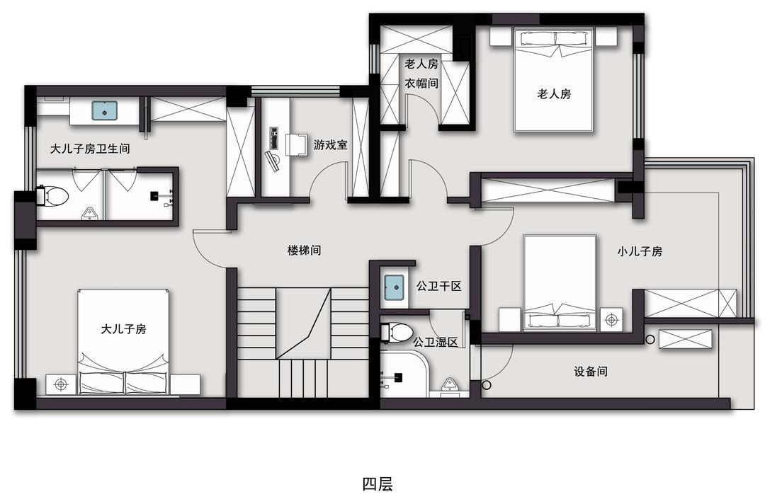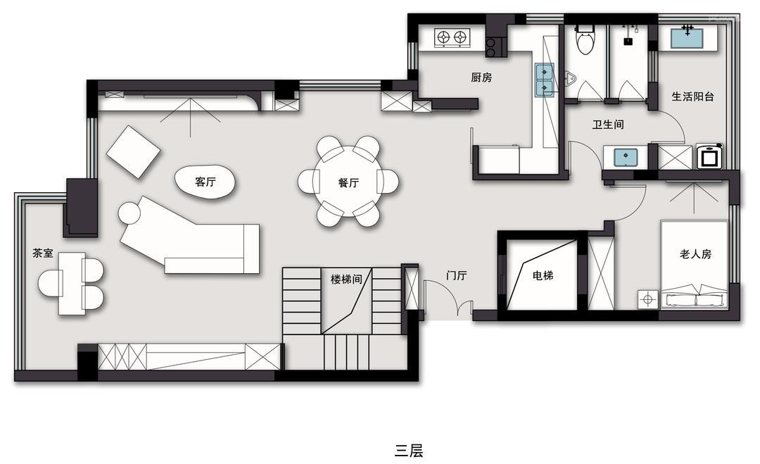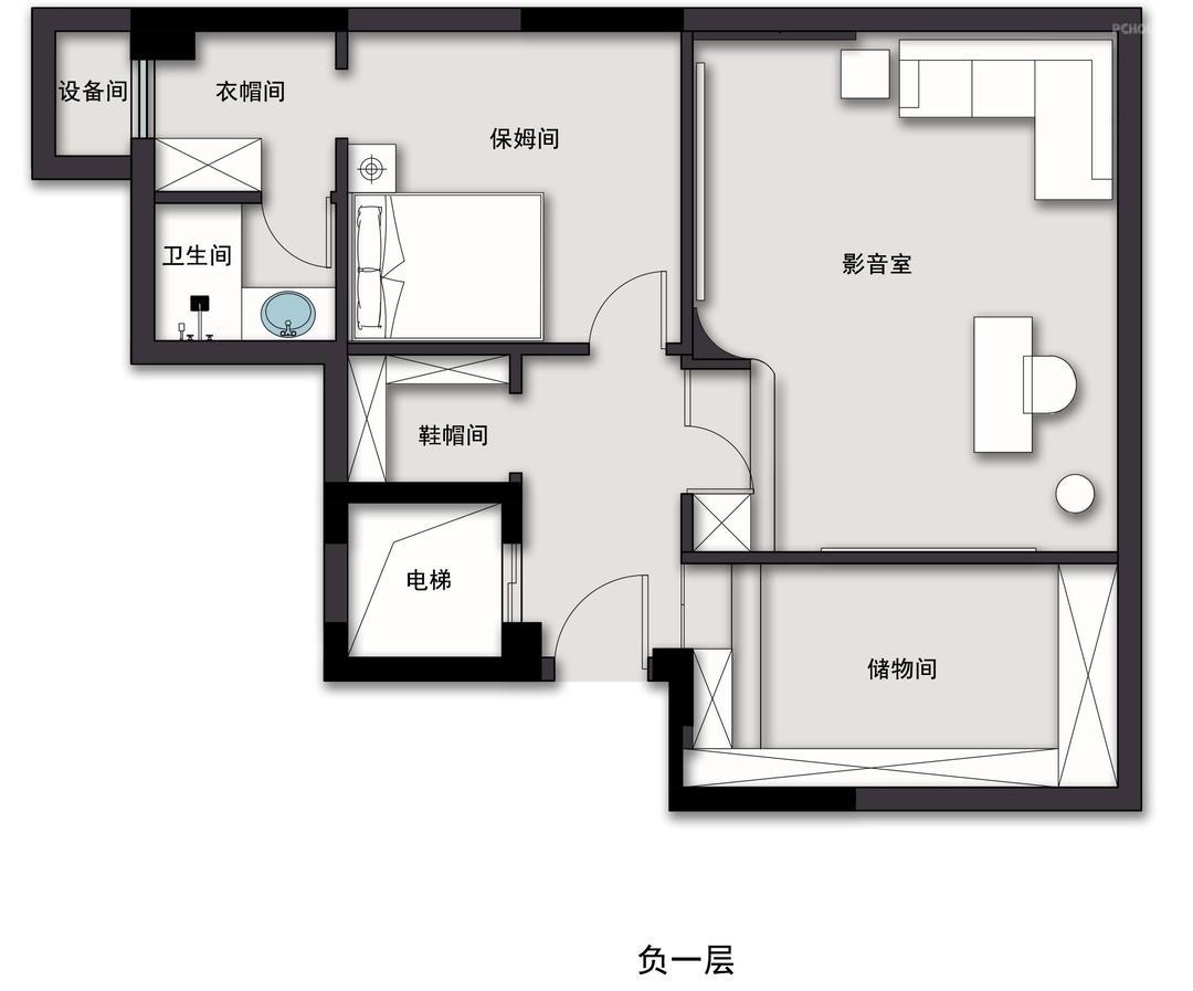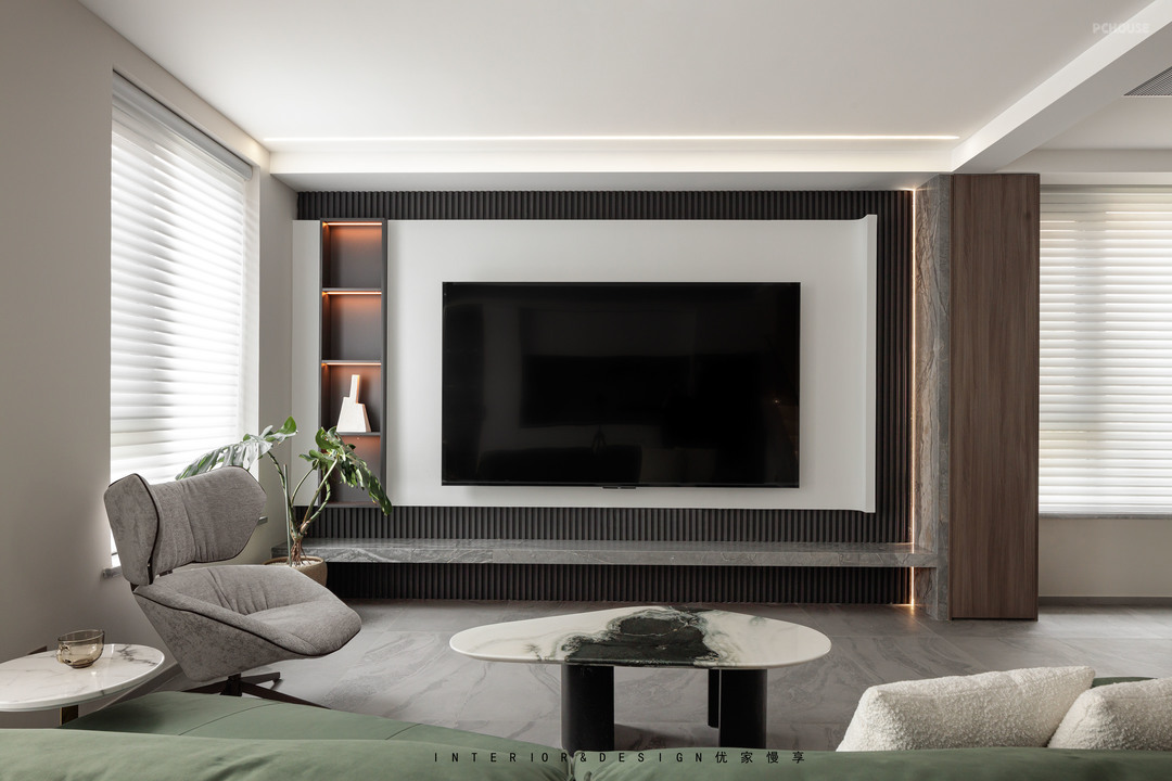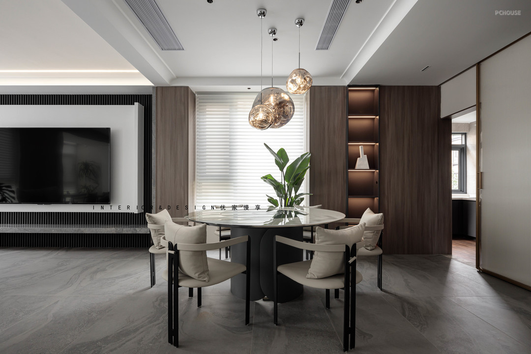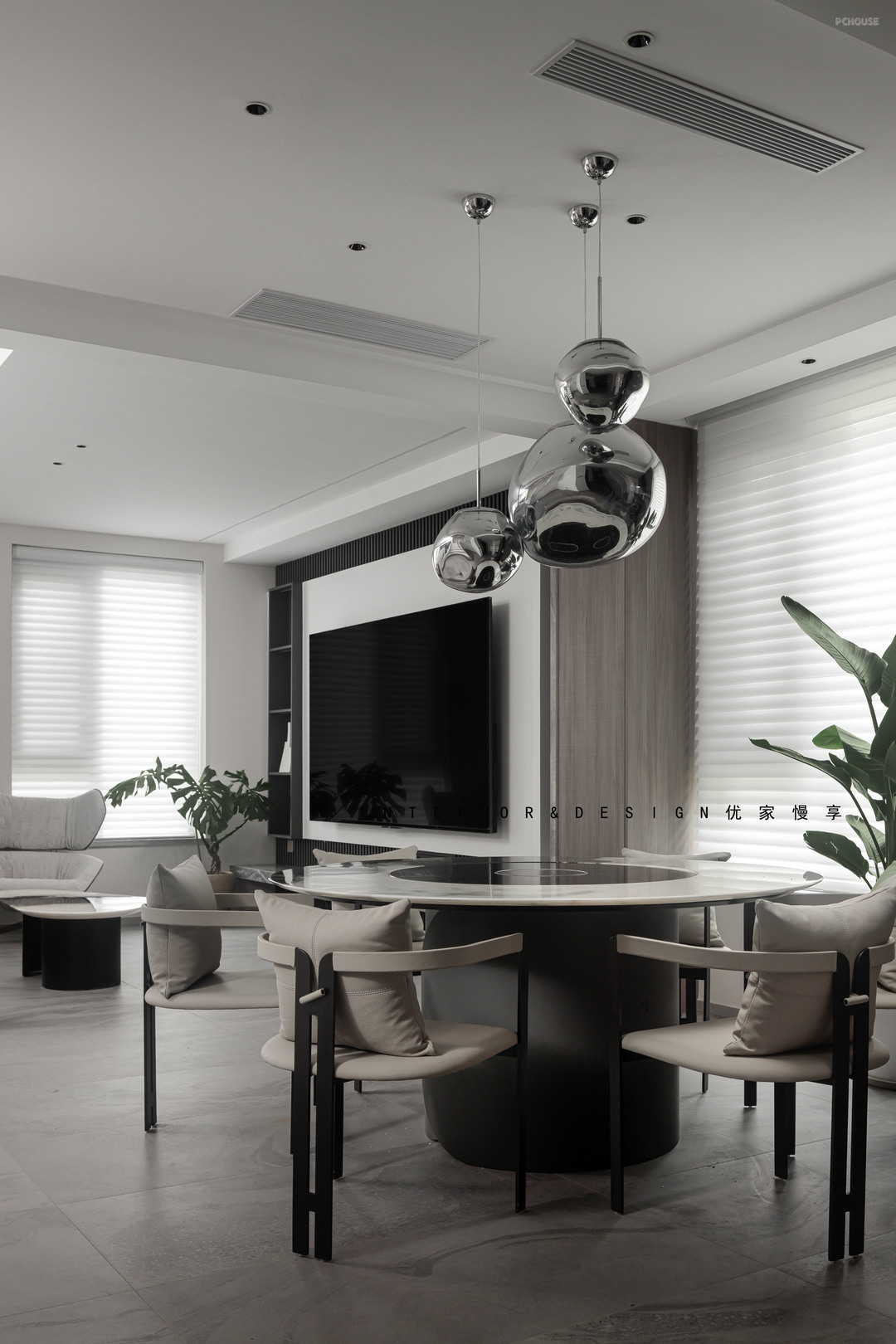 前言: 本案为多人口结构的家庭。家庭男性成员居多,还有一条帅气的马犬,拒绝网红的奶油风,利落的阳刚之气满足了男性的审美。整体的设计考虑上,在一楼设计了洗衣及晾晒区域,方便家里所有成员使用。客厅配置了茶室功能,满足会客需求。 二三楼设置成休息区域,将设备区与休息区分开,并将设备区隐蔽,设备铺设管道更节能。将主卧、宠物间及书房都考虑在三楼,每个空间既能各自独立,又能相互联系,形成交融。