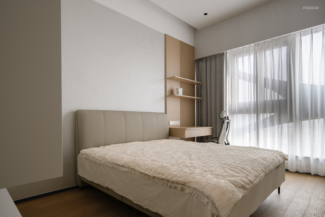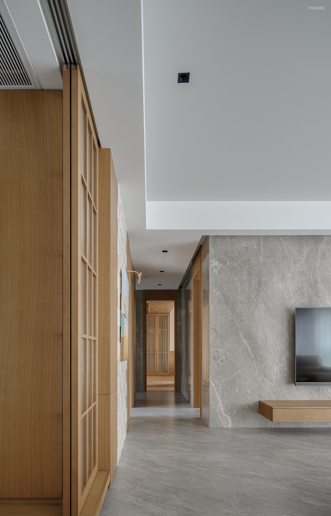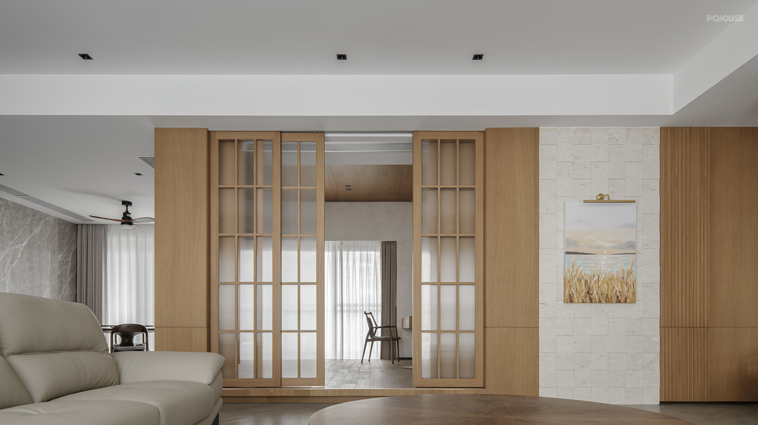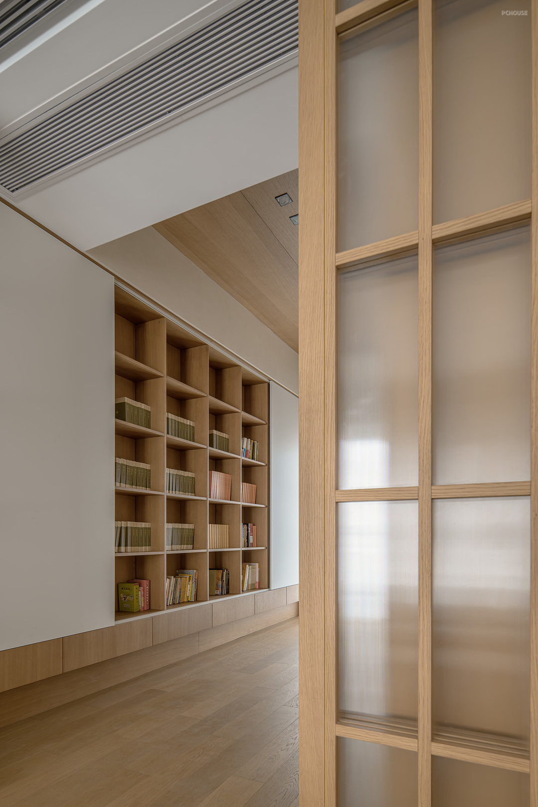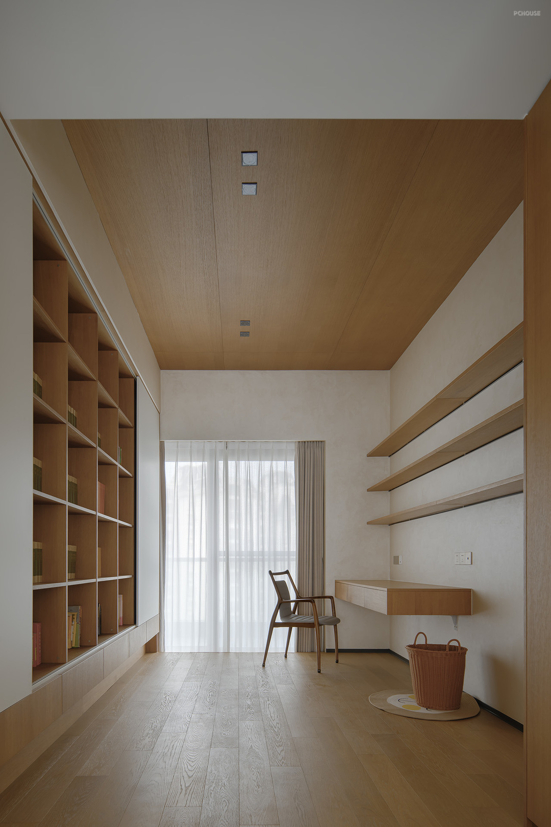 空间流动:书房的设计以推门为媒介,既保留独立,又引导南北通透,形成灵动的气流,宛如轻风拂过。
