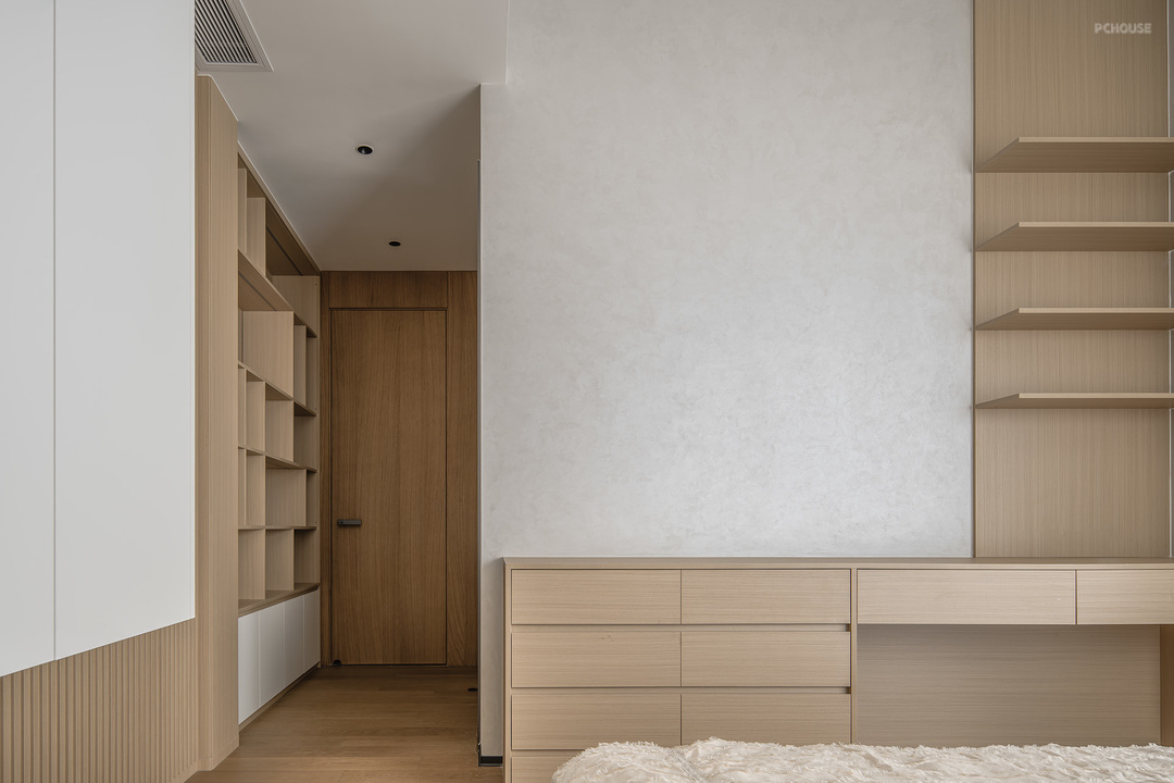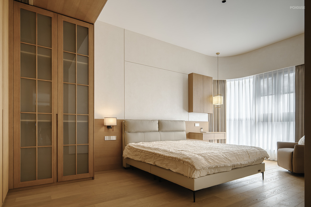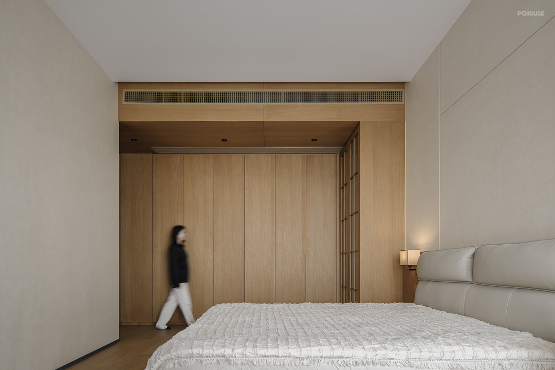卧室拓展:通过合并走道,拓宽主卧与衣帽间,营造出一个如同温暖巢穴般的休憩空间。