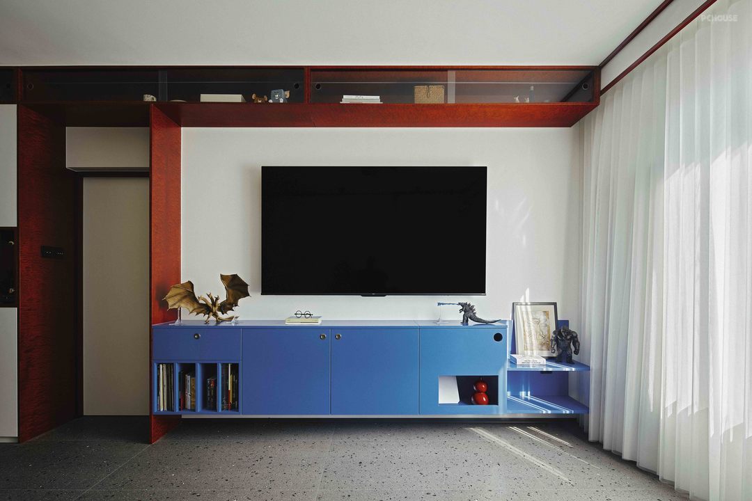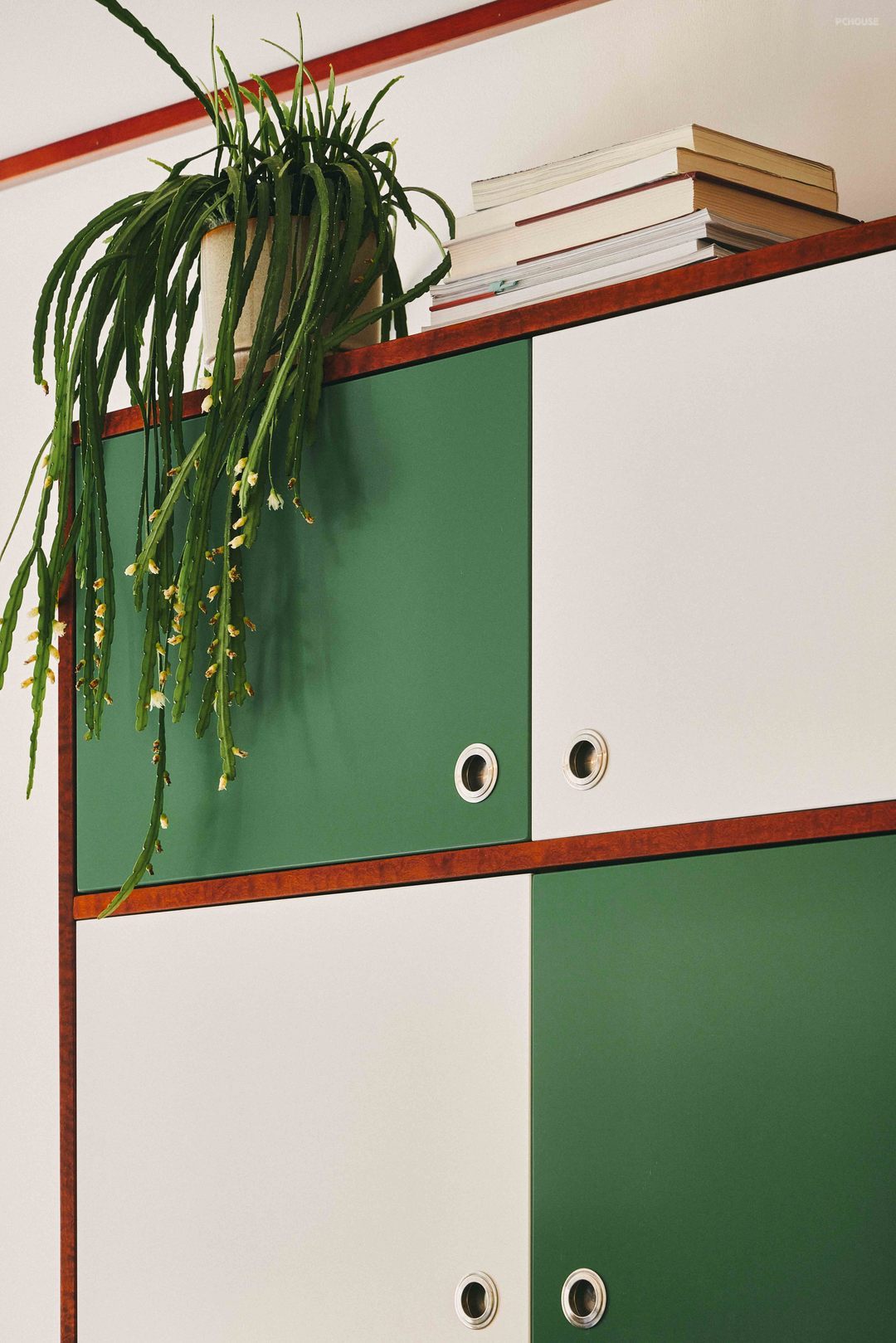 环顾空间,可以明显察觉整个框架被线条穿梭包裹,形成大小不一的“盒子”,互相拼接、堆叠、错落,富有层次感。仿佛每一个柜门后面,都收藏着意想不到的生活好物,这里也暗藏了一个我们的“小私心” ——希望每个角落都能被物尽其用,而不仅仅是为了收纳存在。