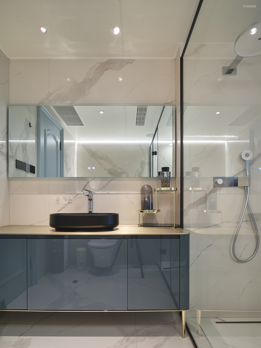 男孩房 采用大量灰色系色块谱写出现代感设计基调。灰色混油墙板搭配灰咖色硬包,空间的层次感在两种不同材质的碰撞中得以充分体现。于艺设,设计师追求极致的美感,于计量,设计师追求极致的工艺。