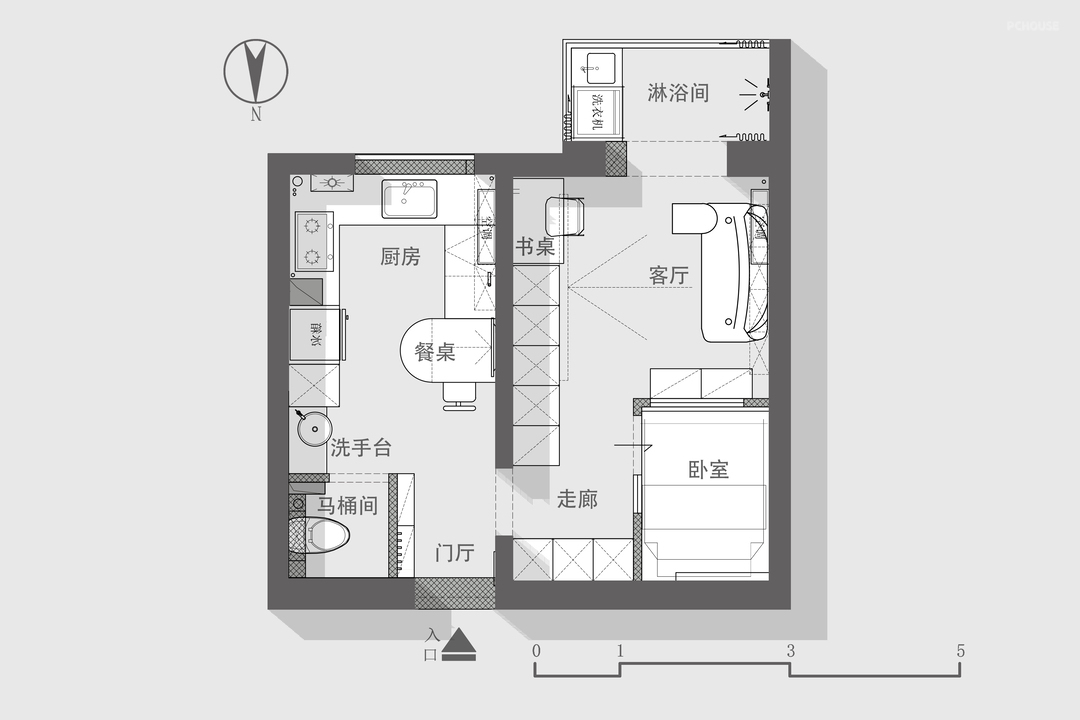 前言: 这是一个建面只有36平,套内28平的一居室。一说28平,大家想到的会是什么,是牺牲餐厅在茶几上吃饭?是放弃干湿分离蹭着马桶洗澡?还是连书桌都没有抱着笔记本在窗台办公?这次的改造,就是让这些关于28平的难题都变成答案!业主是位80后女生,目前就她一个人住,用常规的布局来做,基本需求也能满足。但是怎么能在28平的空间里让需求更舒服更合理的实现呢?在我们综合评估下,最终实现1室2厅1厨2卫的布局。