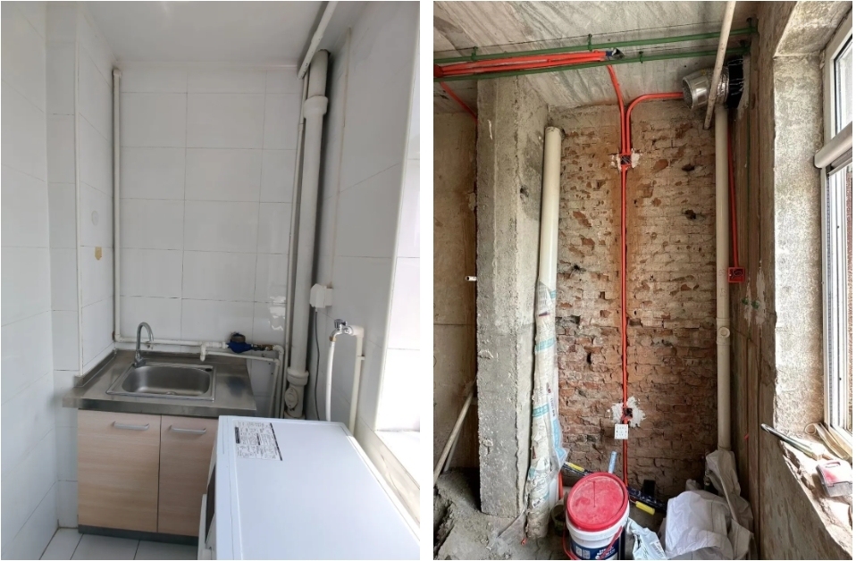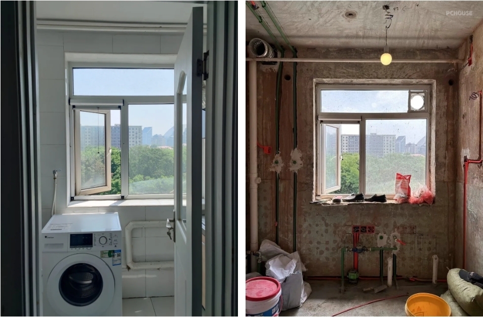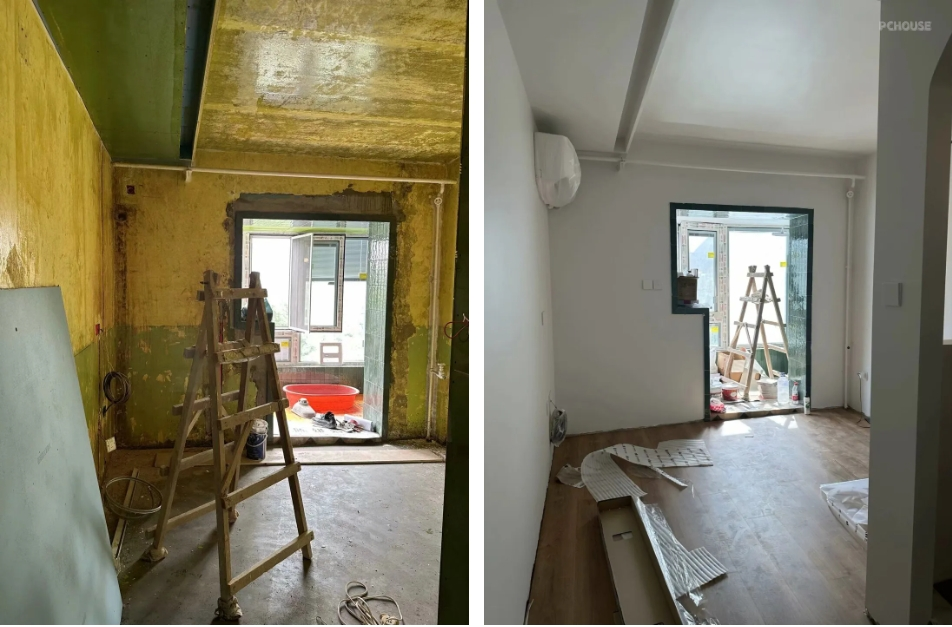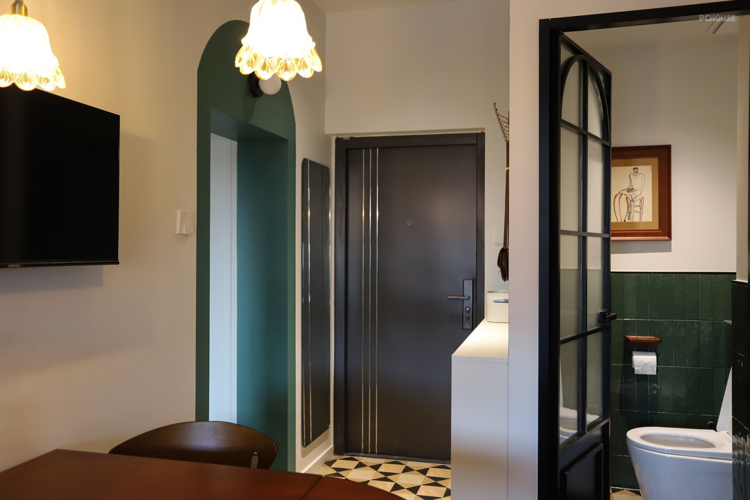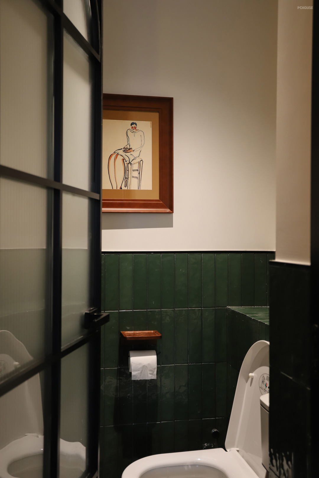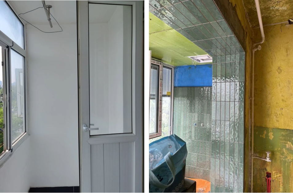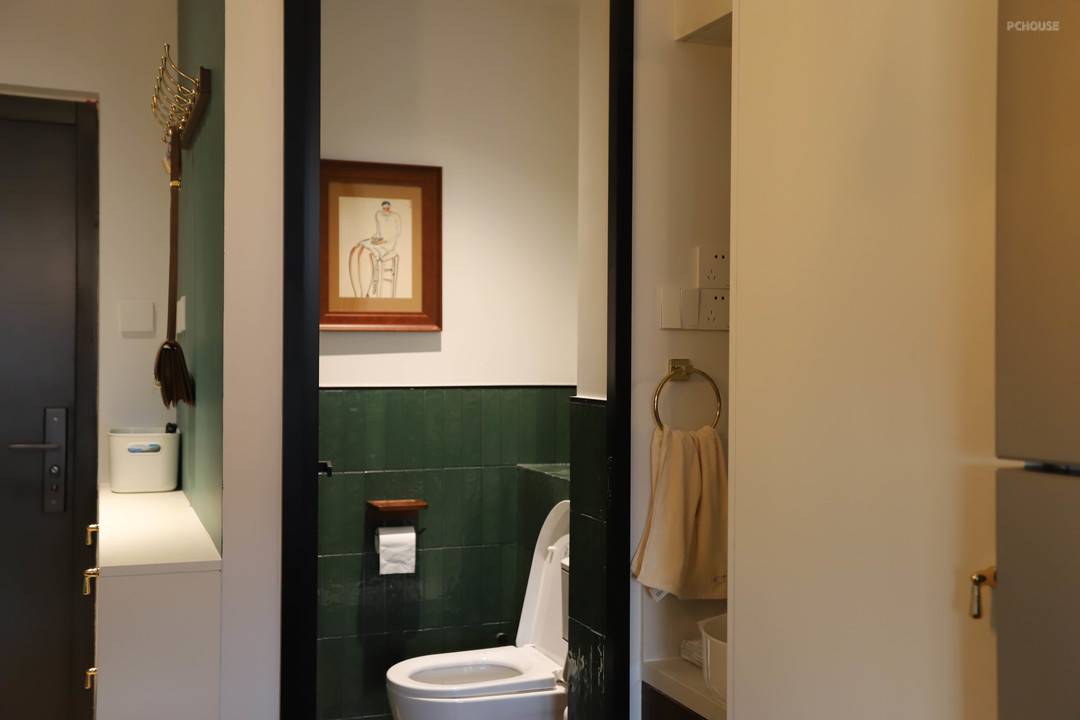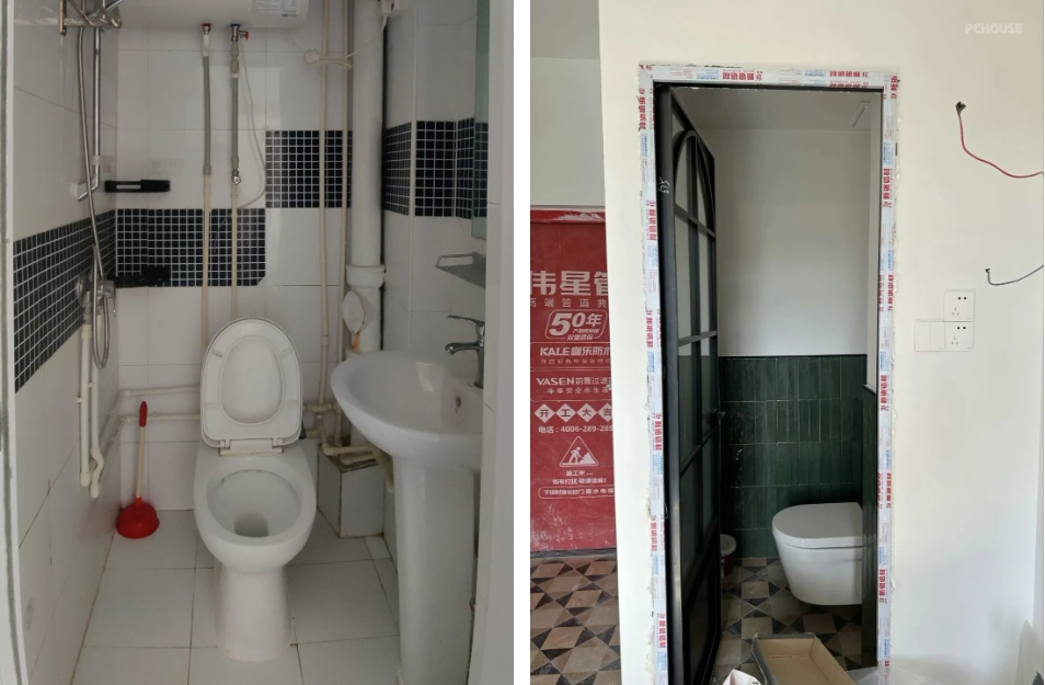 原卫生间的位置只保留了马桶,空间长1180mm,宽1100mm,马桶间没那么潮湿只贴了半墙砖,上半墙就正常刷漆。