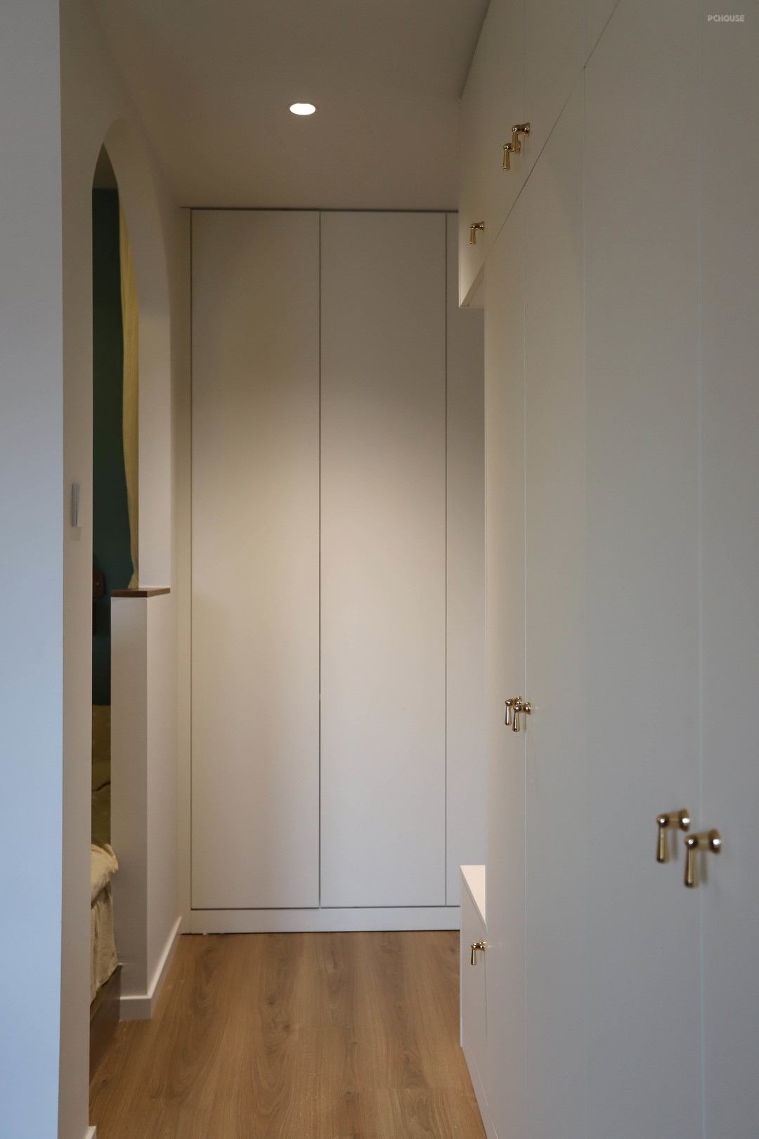 卧室走廊的储物柜作为门厅储物的补充,长1420mm,深500mm,这里也是除了门厅鞋柜之外离进门最近的储物柜了,行李箱、次净衣、换季的鞋子这些都可以放在这。门洞左边的柜子做了一个上中下设计,方便在这坐着换鞋和外衣。 -餐厅-