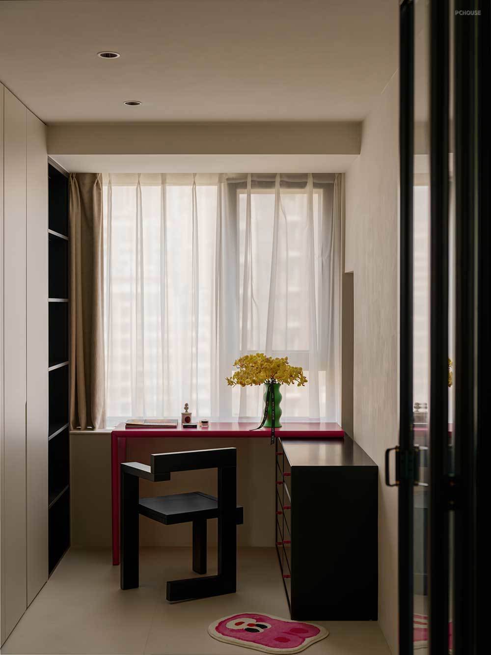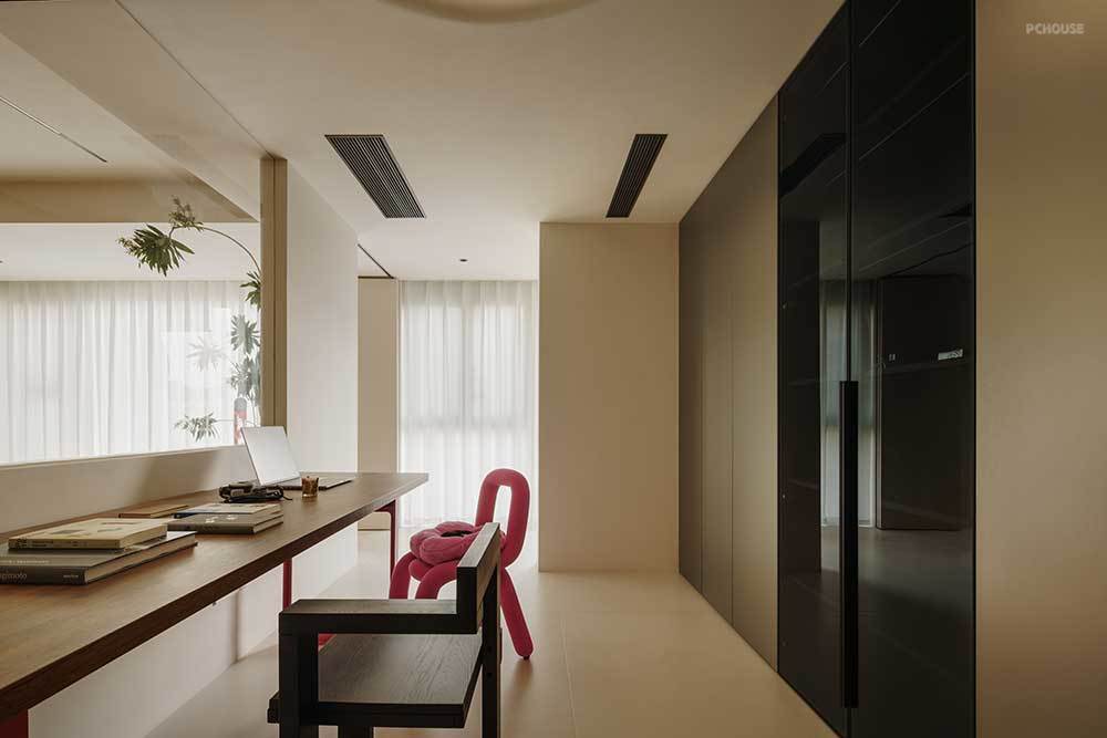 视觉上进行了调整,使进客厅的空间感放大两倍,在通透的书房中办公游戏也显得格外开阔。