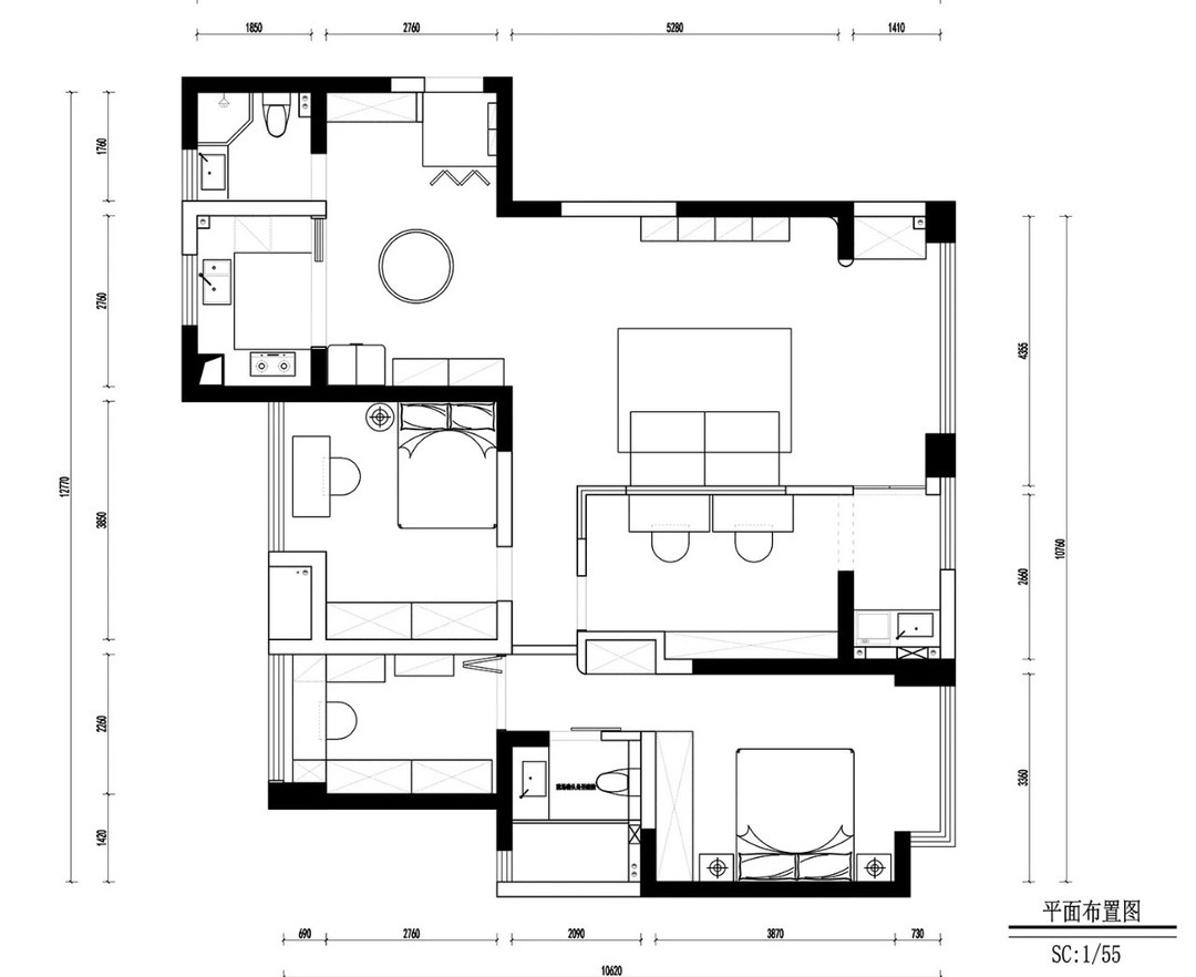 整个客厅的收纳较小,将收纳移入书房空间,保证客厅的整齐,也保证收纳的空间,非常巧妙的设计。