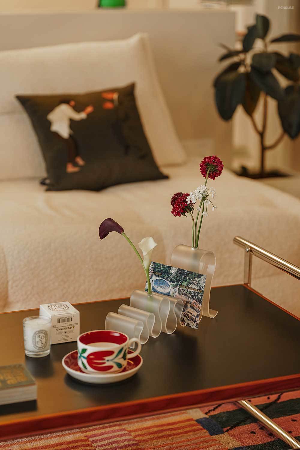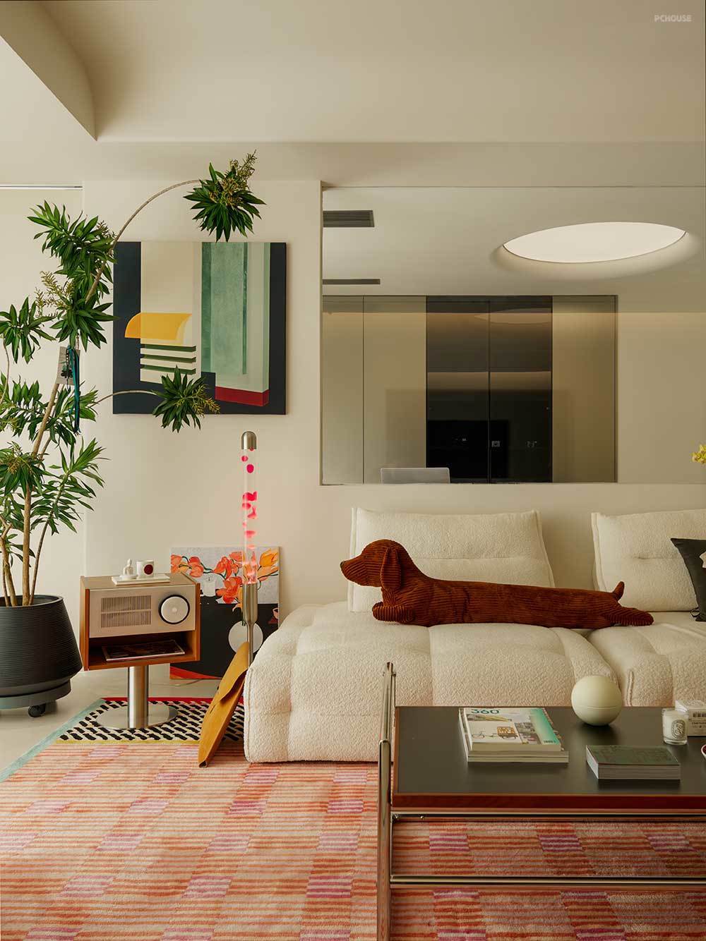 豆腐块的沙发,以及毛圈质感的布艺跟整体空间氛围非常符合。