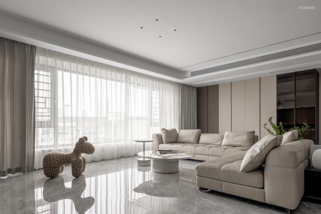 慵懒大沙发聚拢围合之意,与家人促膝而谈分享趣事,同时也满足自己独处轻松的氛围。