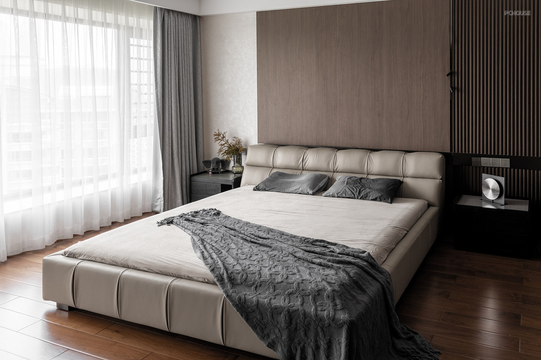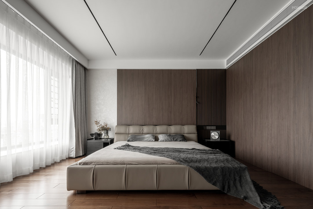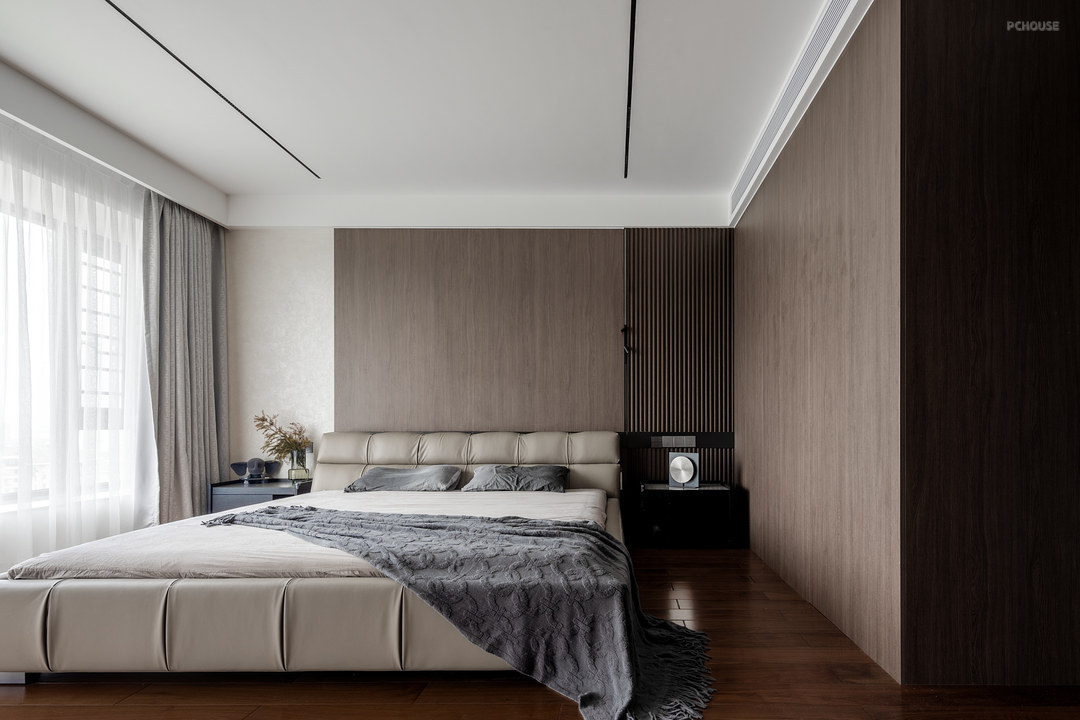 关于私密空间,尽可能的去除非必要繁杂的陈设,卧室本身就是留给身心一个放松的地方,也是必要和非必要的边界,值得深思。给空间必要的留白,给人们一种静谧的安定感,留给身心适当的放空。