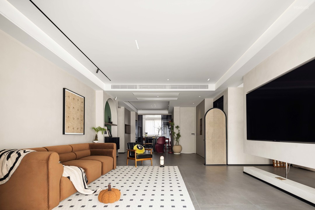 简装修重装饰。无主灯增加空间氛围感