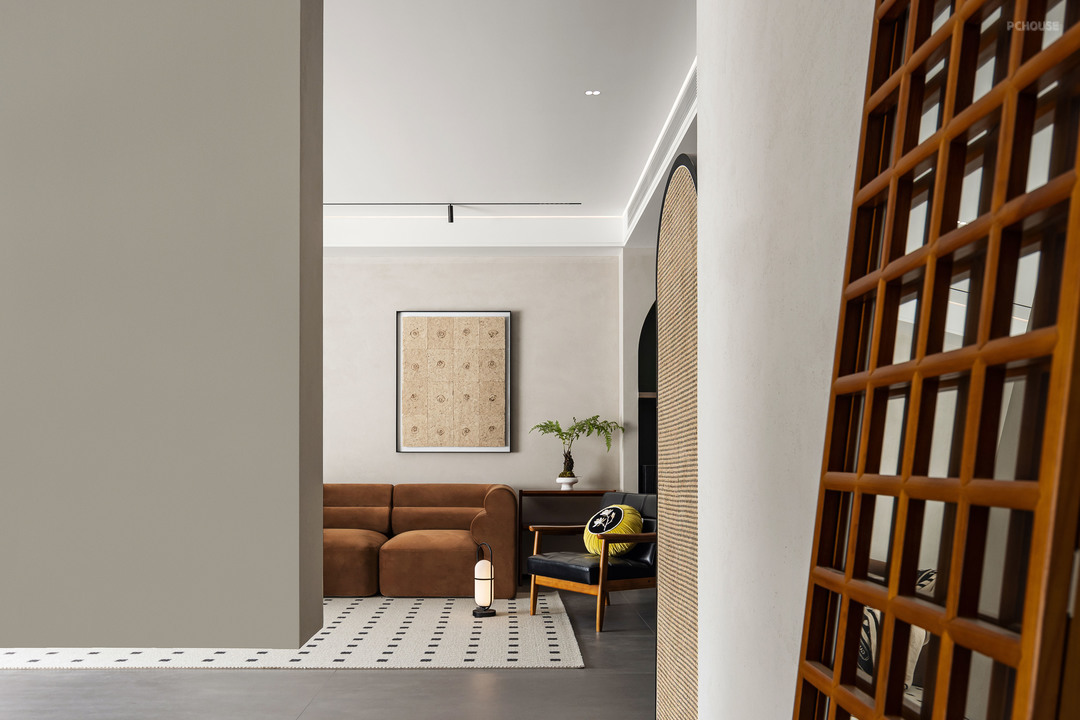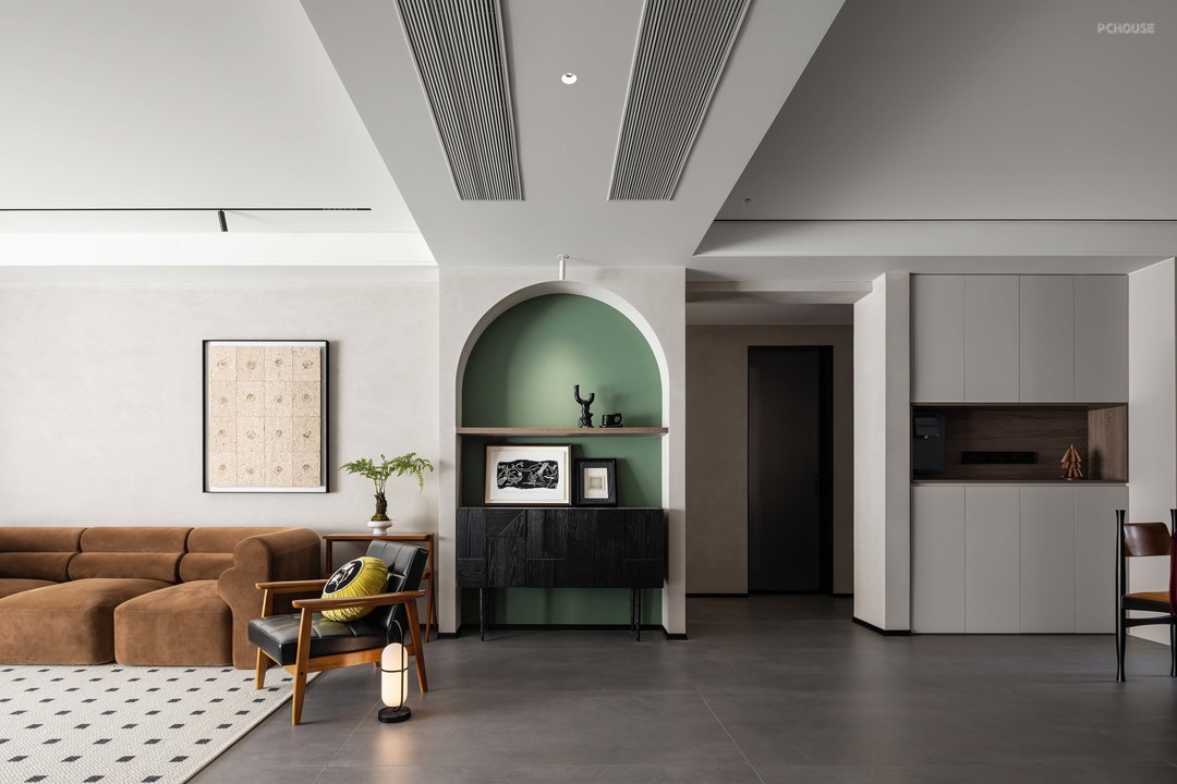开门第一眼装饰造型,柔美弧度,增加空间的柔和度。跳色也是点睛之笔。硬装软装相辅相成。