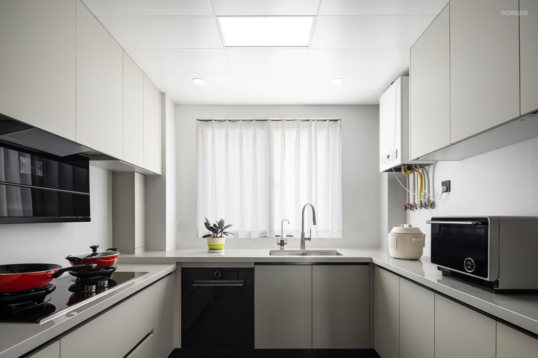 充分考虑使用者的感受和需求。洗菜盆一边柜体做了抬高设计。