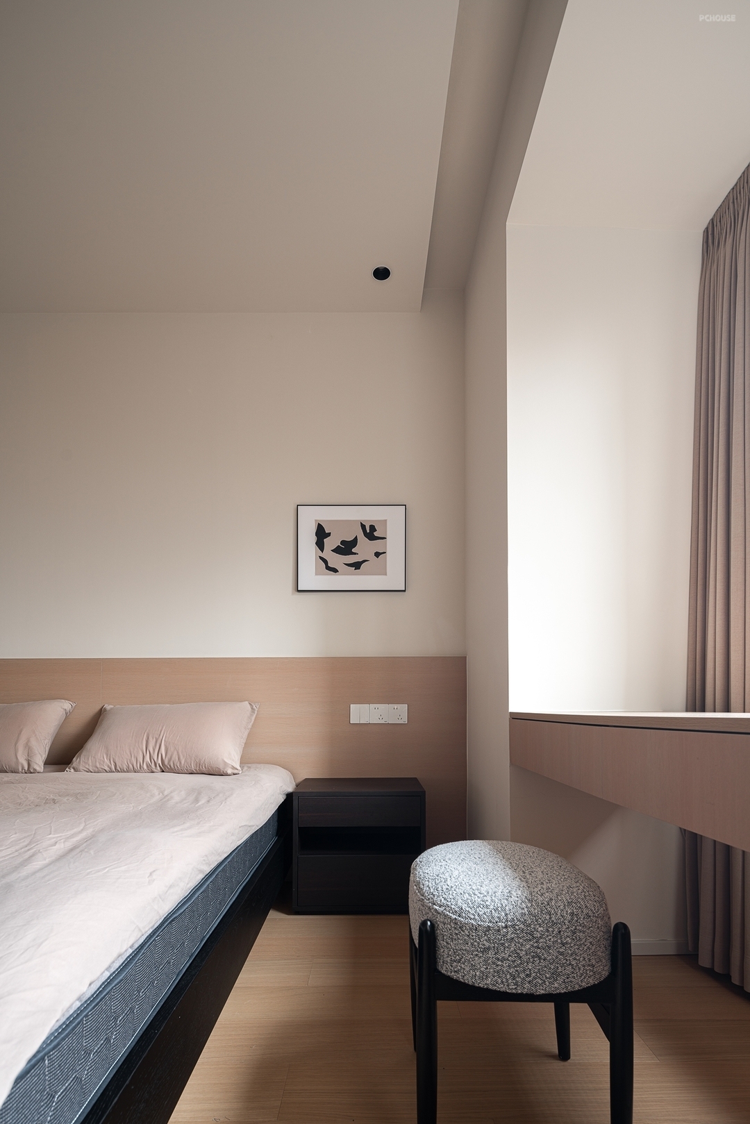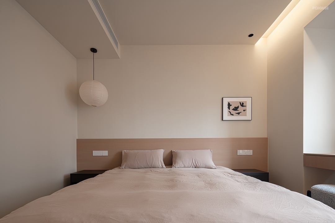 含蓄、简单、百搭,共同营造出了轻松舒适的睡眠氛围