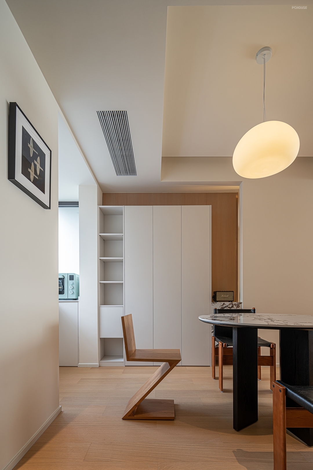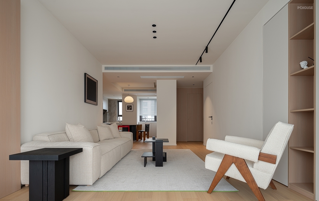 柜门拉手选择了极简隐形式拉手,色调也与整个空间形成呼应