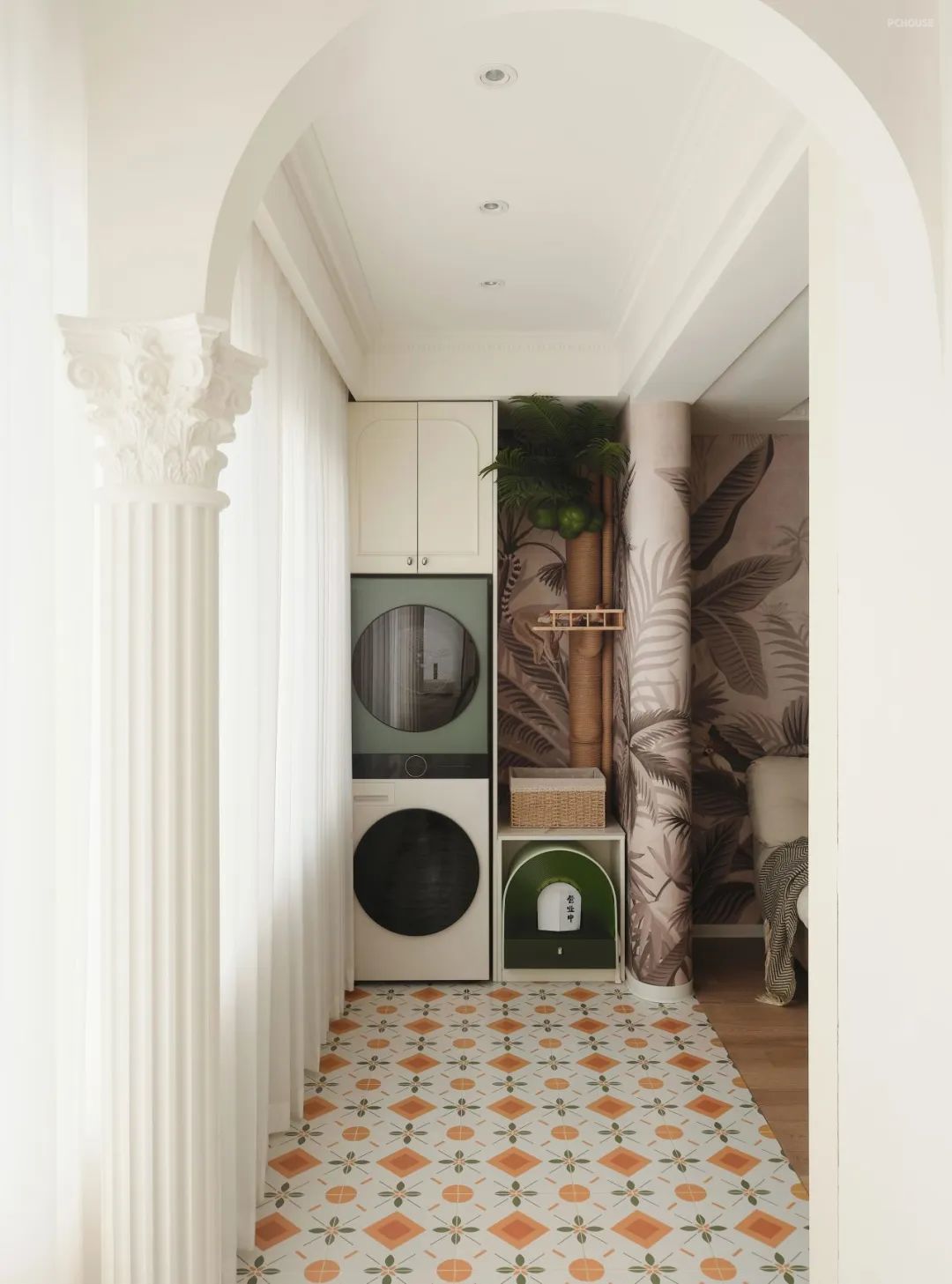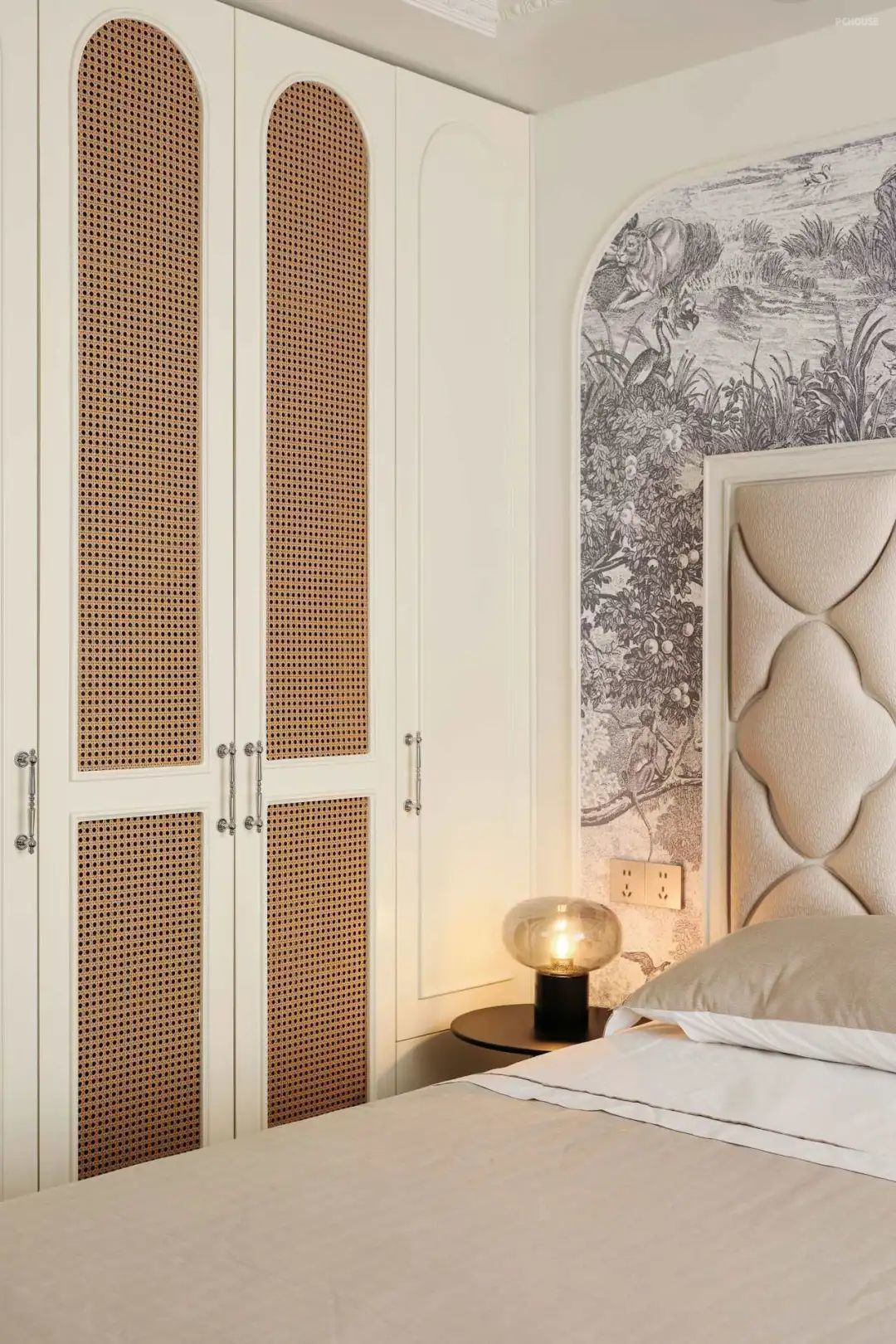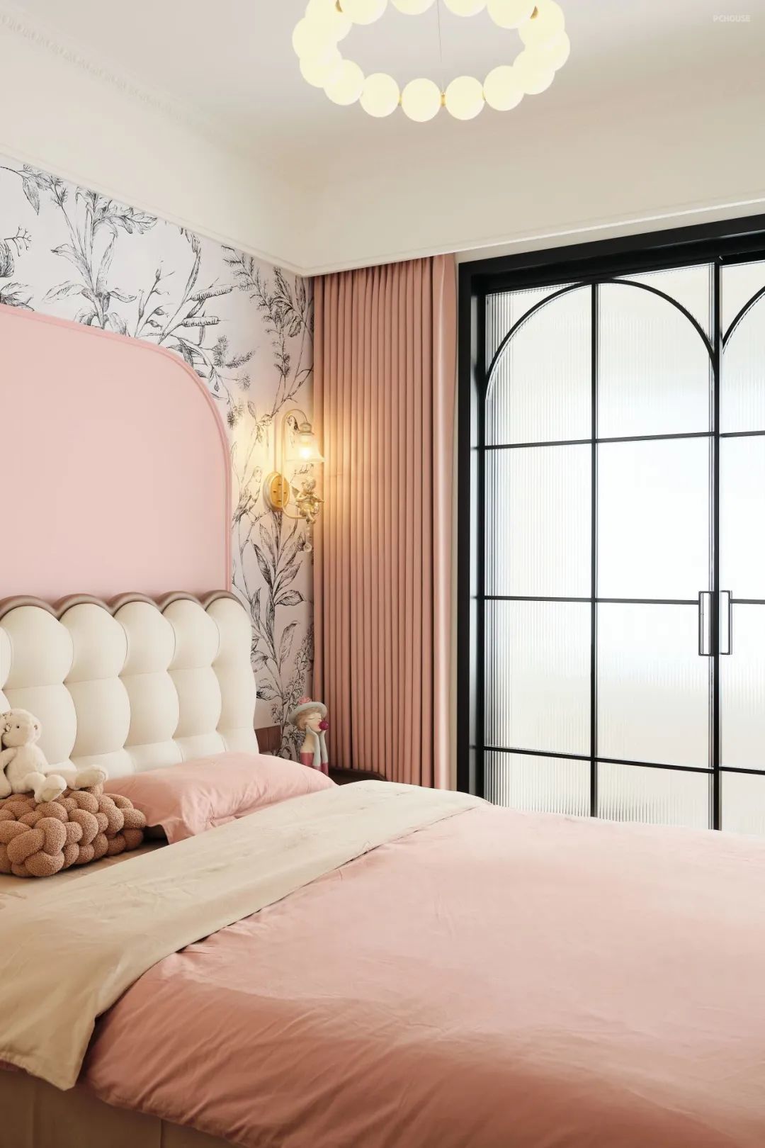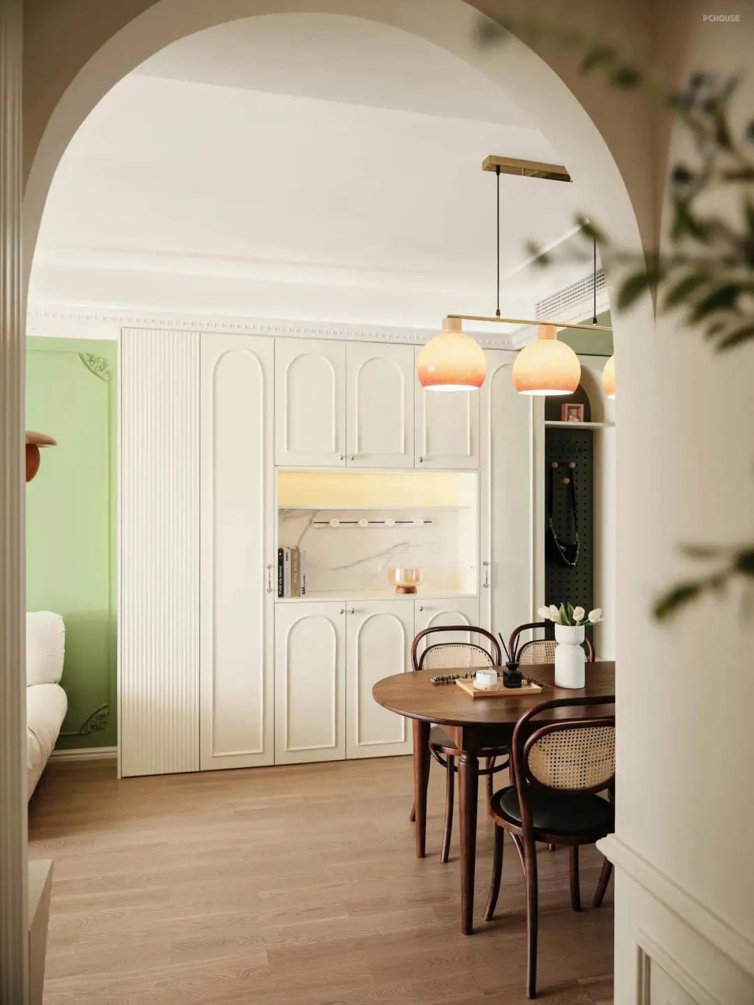客厅是以绿色为主色调,搭配上奶油白色,给人一种浪漫的法式感。