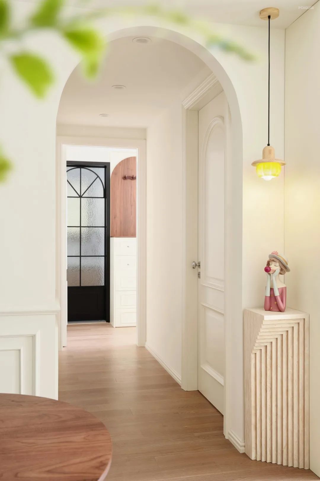 硬装上,我们仅对次卧门的门洞重新调整了位置。软装上,我们对开发商交付的玄关柜进行了拆除,对厨房门、卧室门、进行了更换。墙体也重新进行了色彩上的设计。