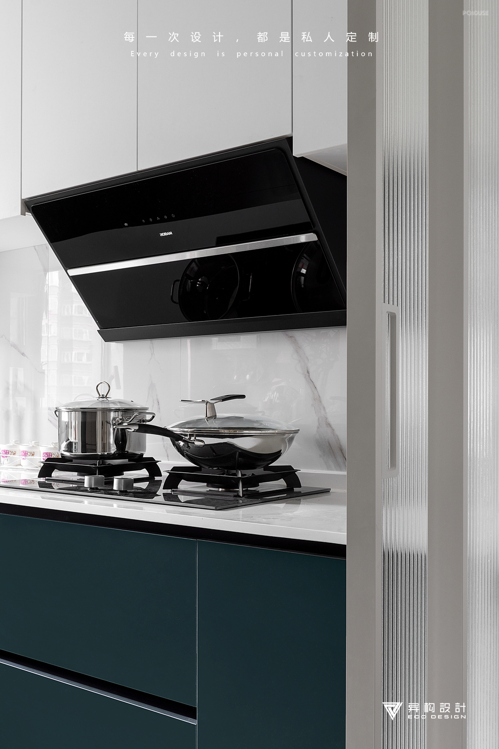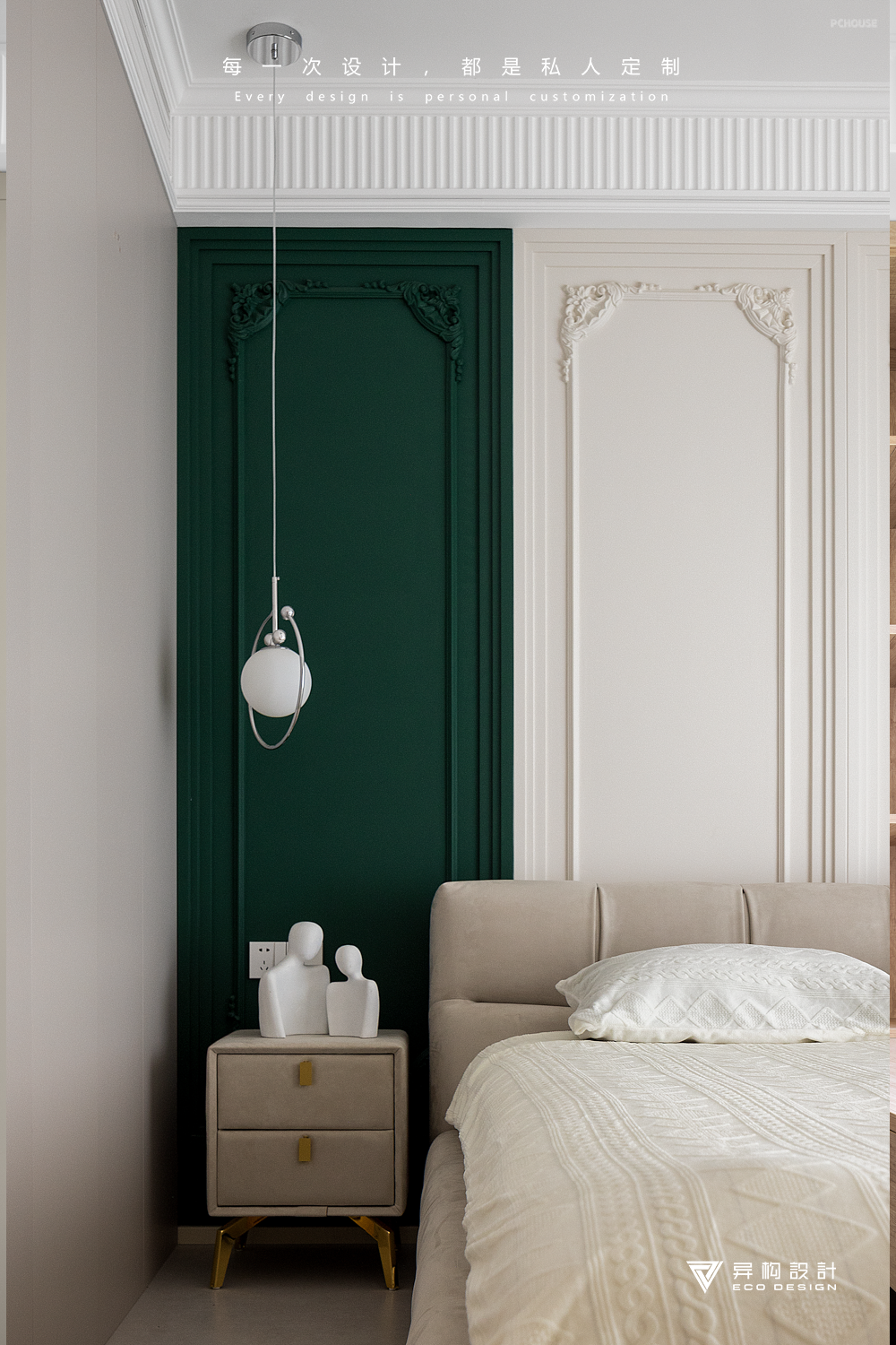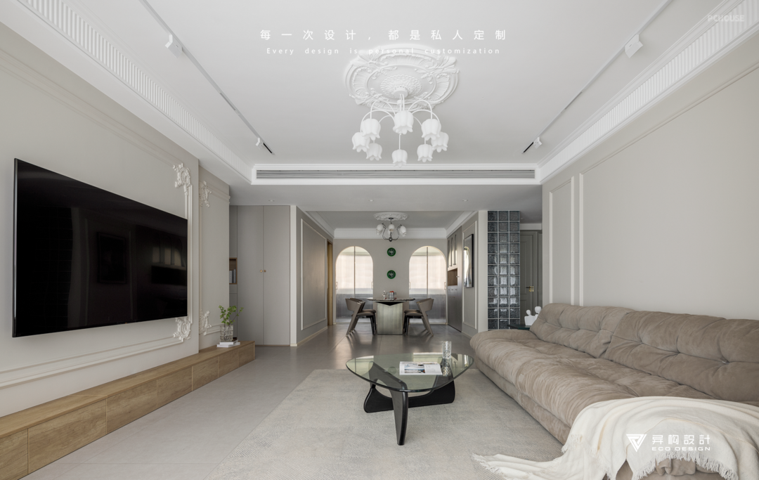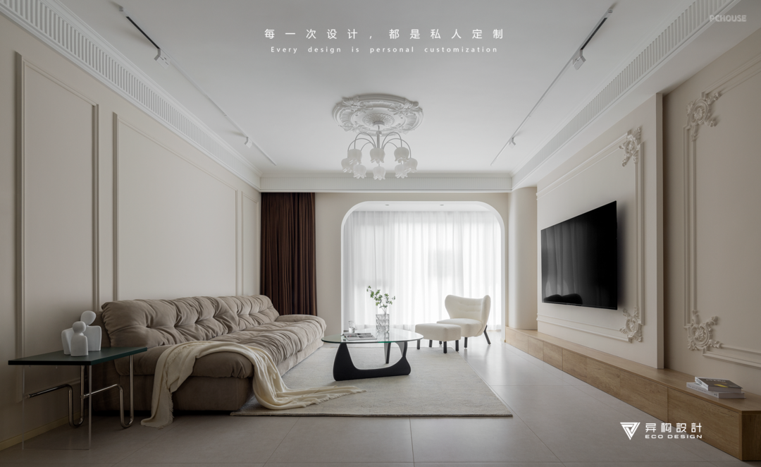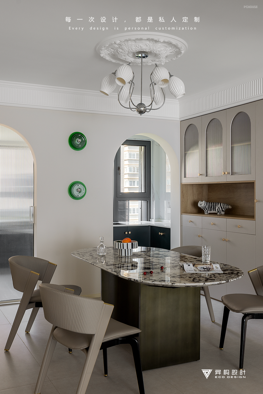 设计中主要改造部分是厨房旁边的生活阳台,以及客卫比较小将台盆外移缓解空间拥挤,同时增加空间层次感,最后在硬装上采用弧形线条以及石膏线条来增强法式氛围感。