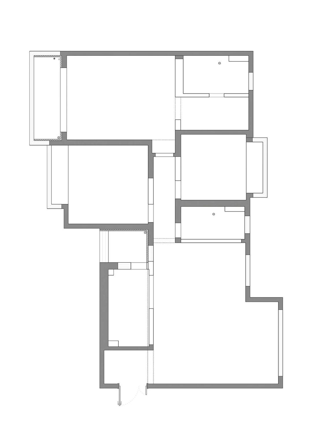 ①原始户型规矩且空间宽阔,但是空间区域界限变得模糊,各区域之间缺乏联系。