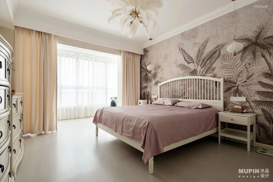充满法式浪漫的床头壁纸,