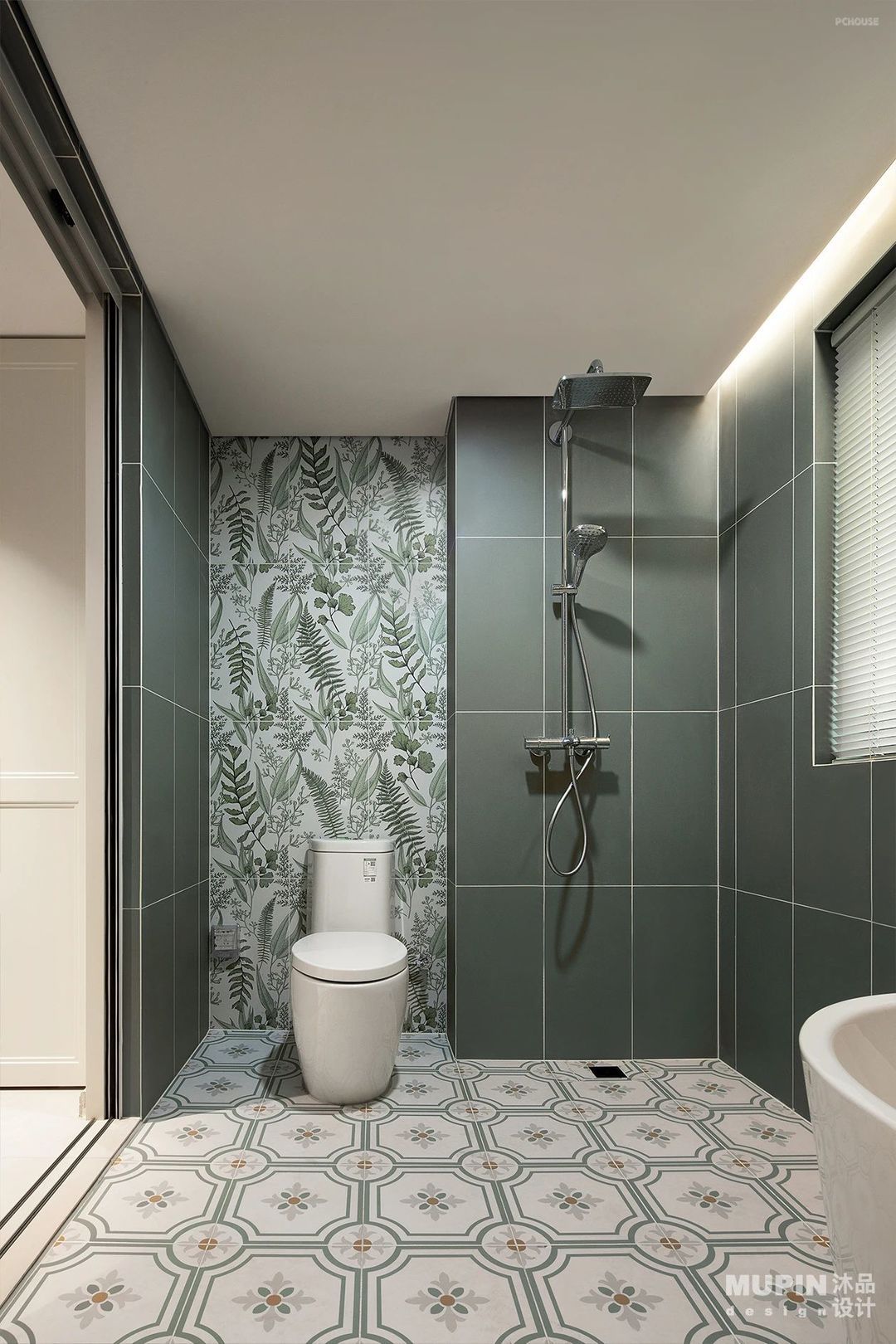 墨绿色碎花壁纸为空间添入复古韵味,
