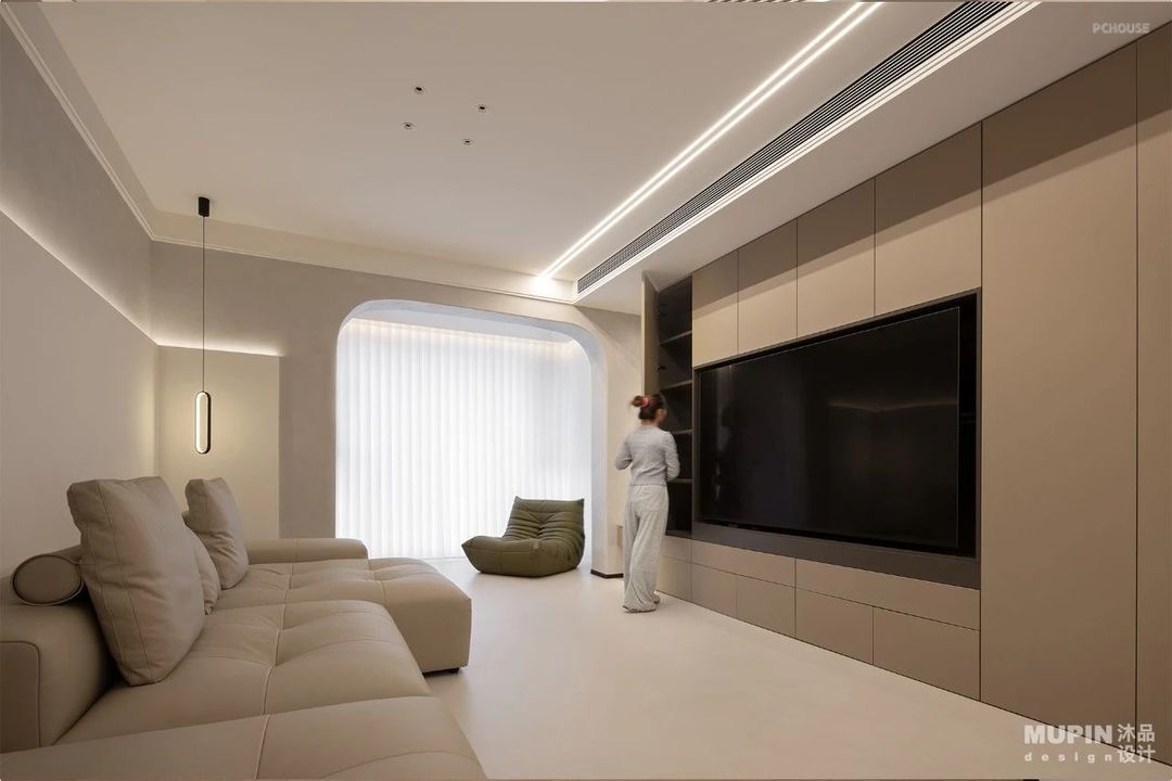 步入客厅内,淡雅色调的客厅呈现男主人期待的极简设计,