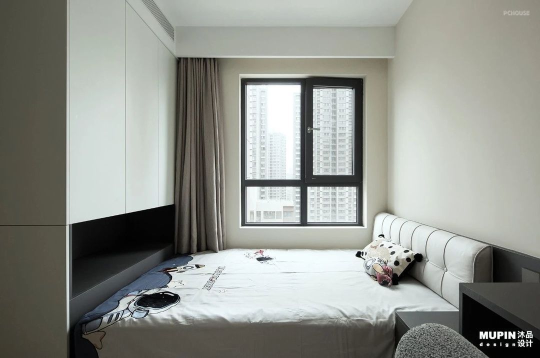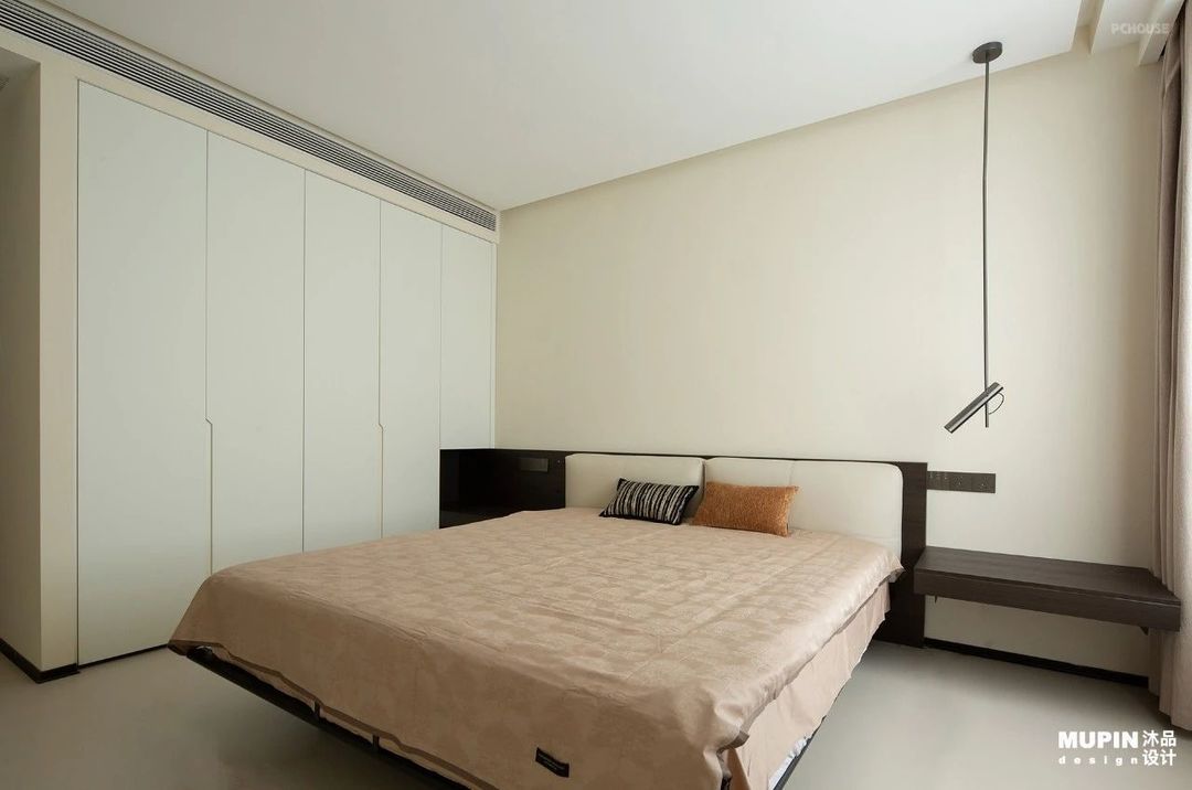 在这一方暖色极简风的主卧天地里,