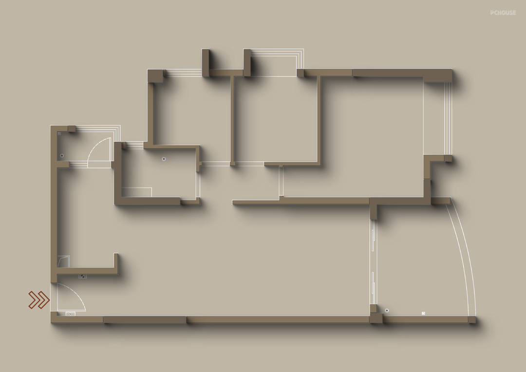 原始户型的3个卧室都很小,2个卧室只放得下榻榻米,一条过道非常浪费空间。