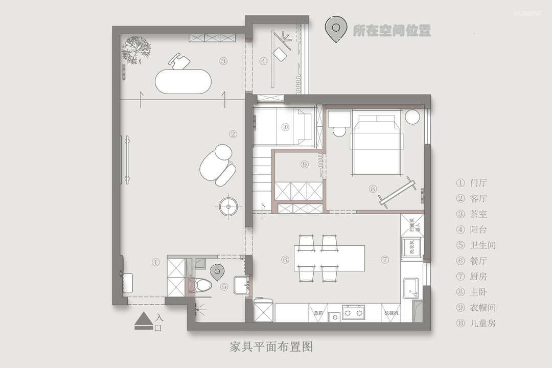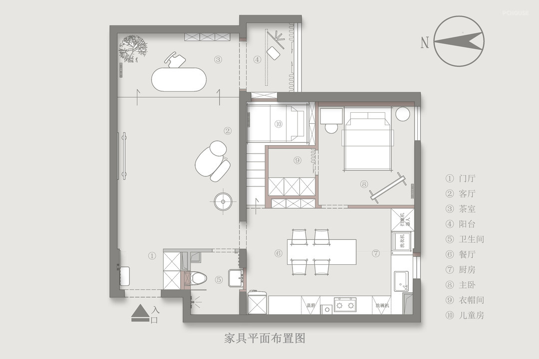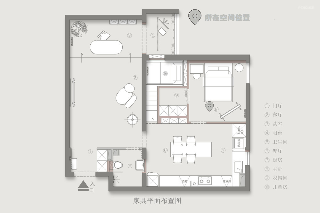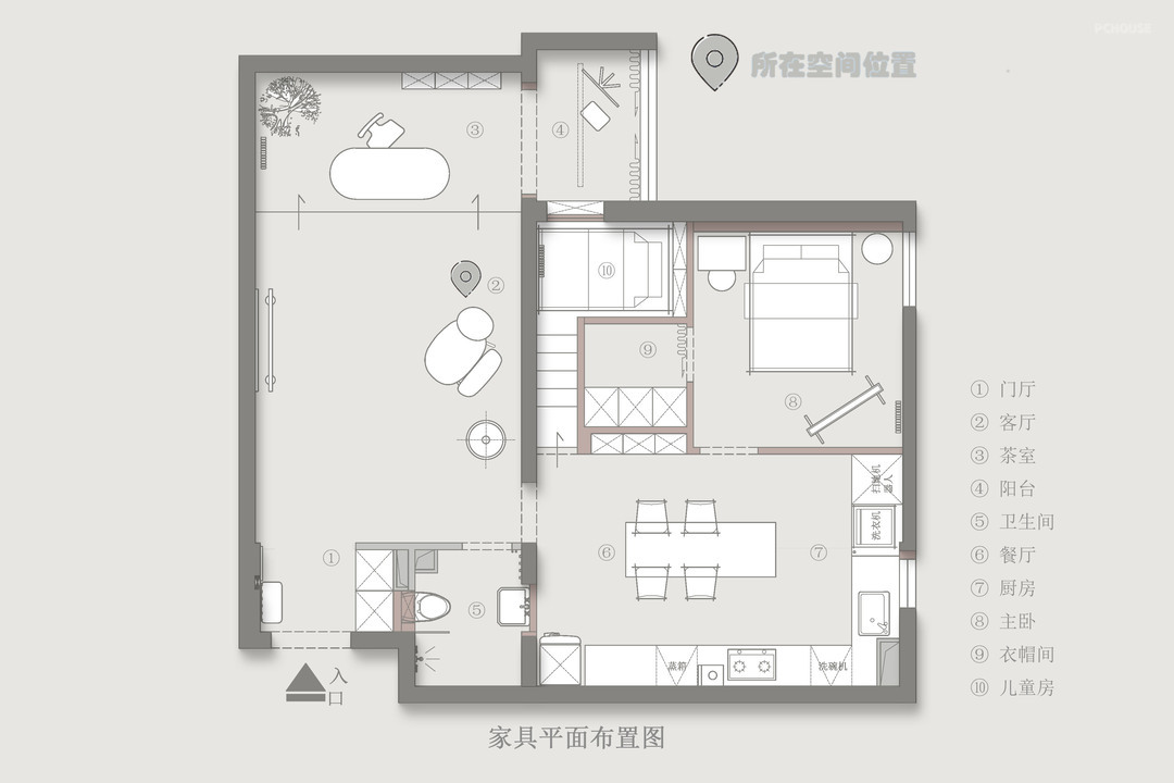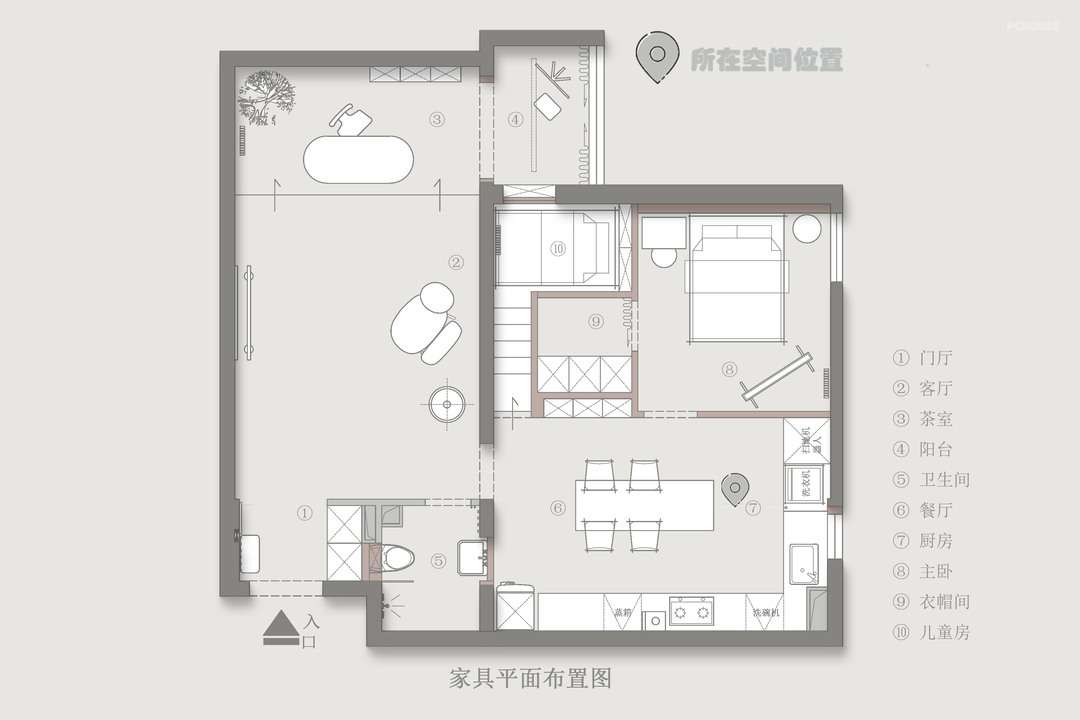1、门厅隔墙取消,增加通透感