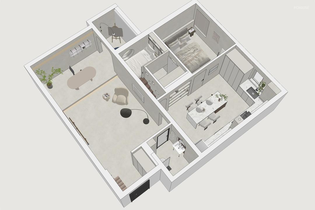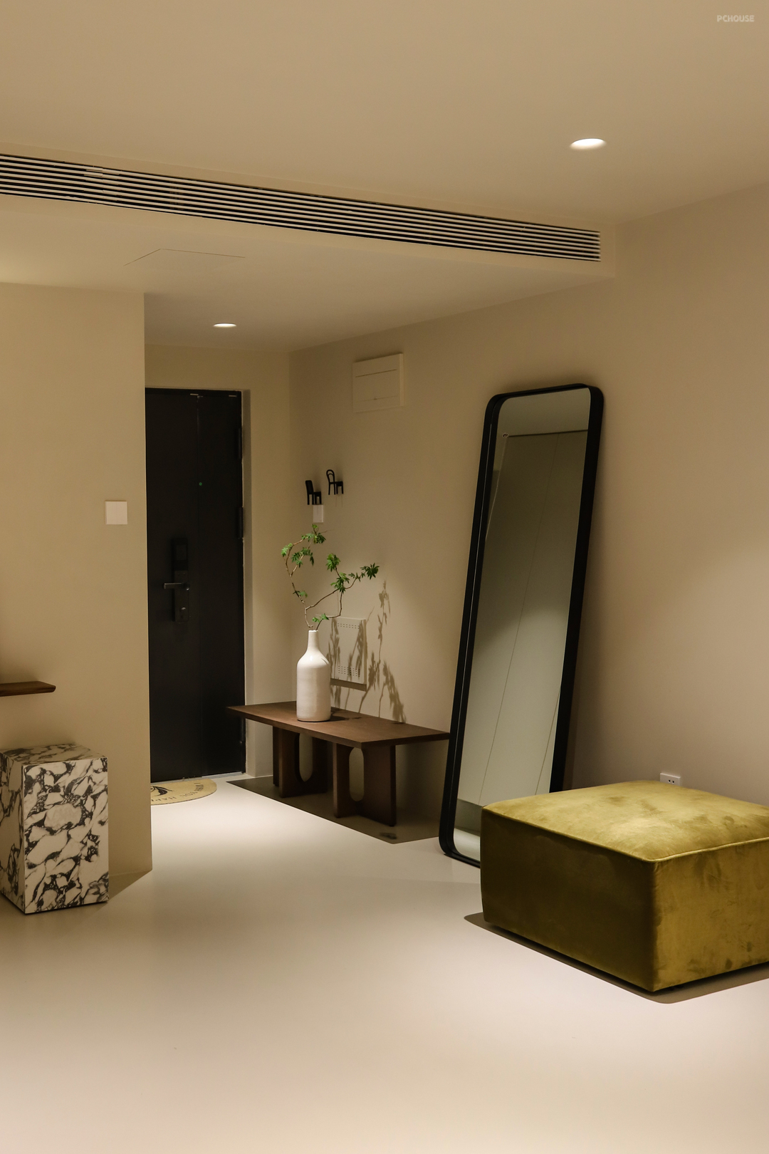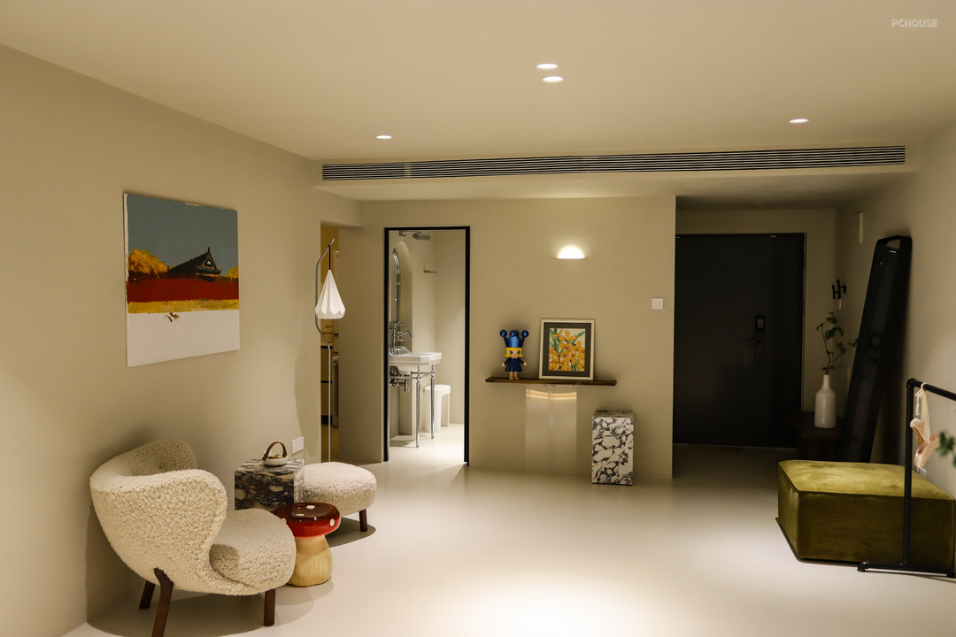 前言: 这套房子是业主的婚房,是他们北京第一个家,后来又买了新的房子,这里就被闲置了。随着孩子一点点长大,他们就想着把这套房子用起来,可以作为周末休闲度假的地方。因为孩子也在学习芭蕾,除了度假功能,他们还希望家里能有个开阔的场地,让孩子平时在家时也能练练基本功。他们比较喜欢侘寂风,但是又不希望家里像侘寂风那样过于古朴避世。所以这次我们全屋用了微水泥,但软装上的选择又是比较温柔且现代的家具,家里整体呈现出来一种宁静优雅却又时尚的感觉。
