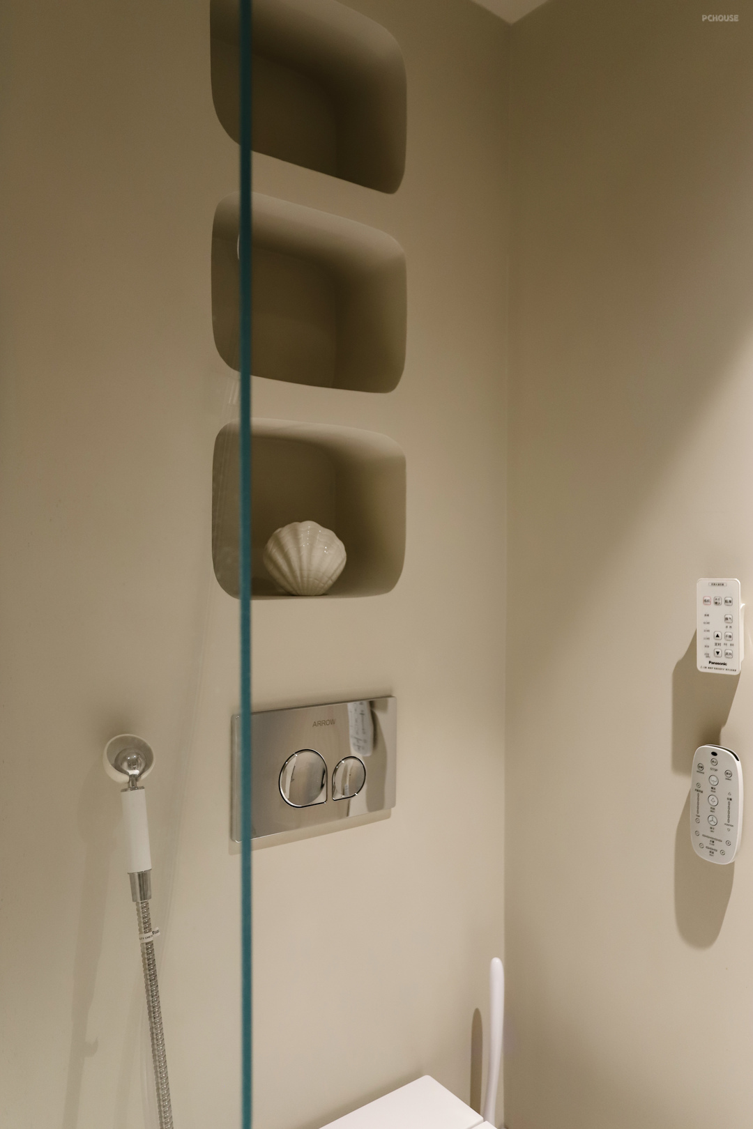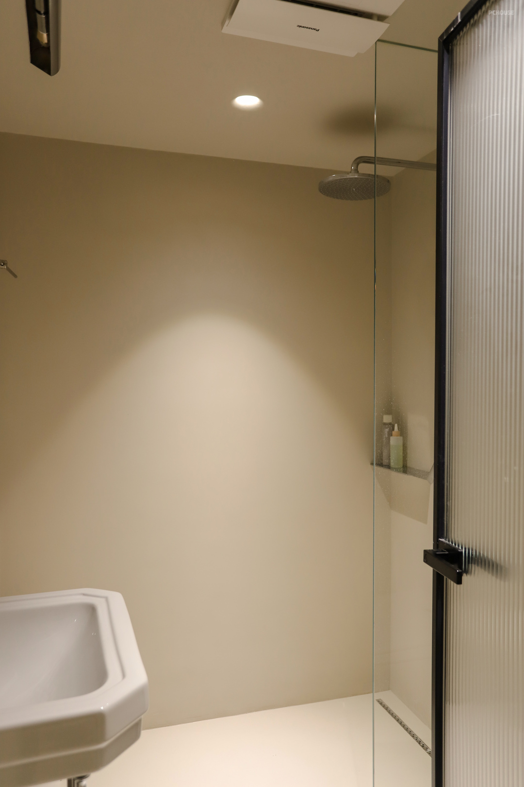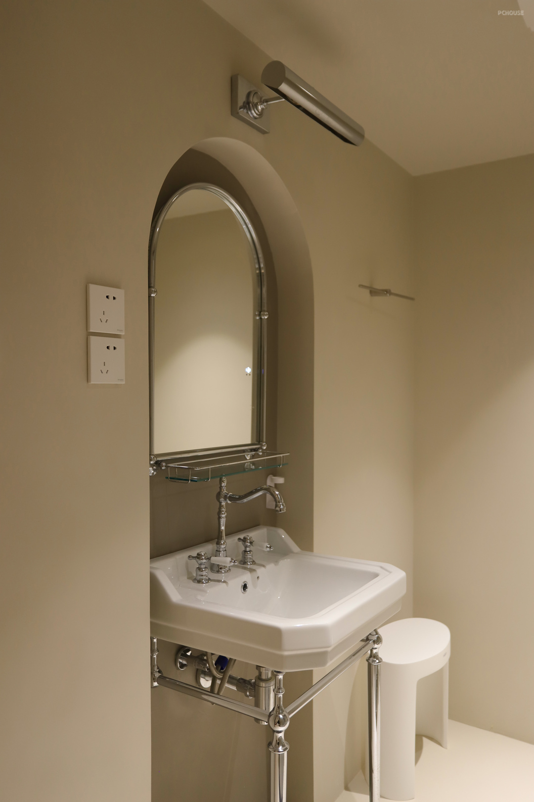 壁灯和内嵌射灯选的石膏款,需要提前预埋石膏本体,油工阶段和墙面一样的处理,这样就能达到和顶面和墙面融于一体的效果,过渡流畅,有一种自然有机感。