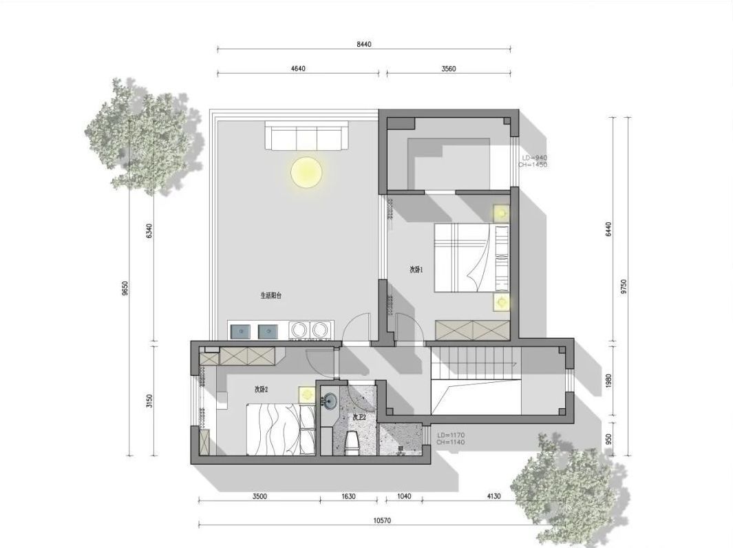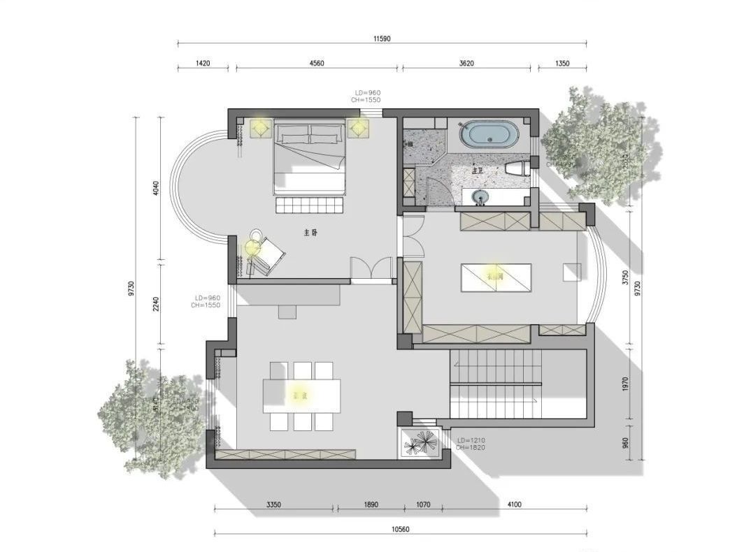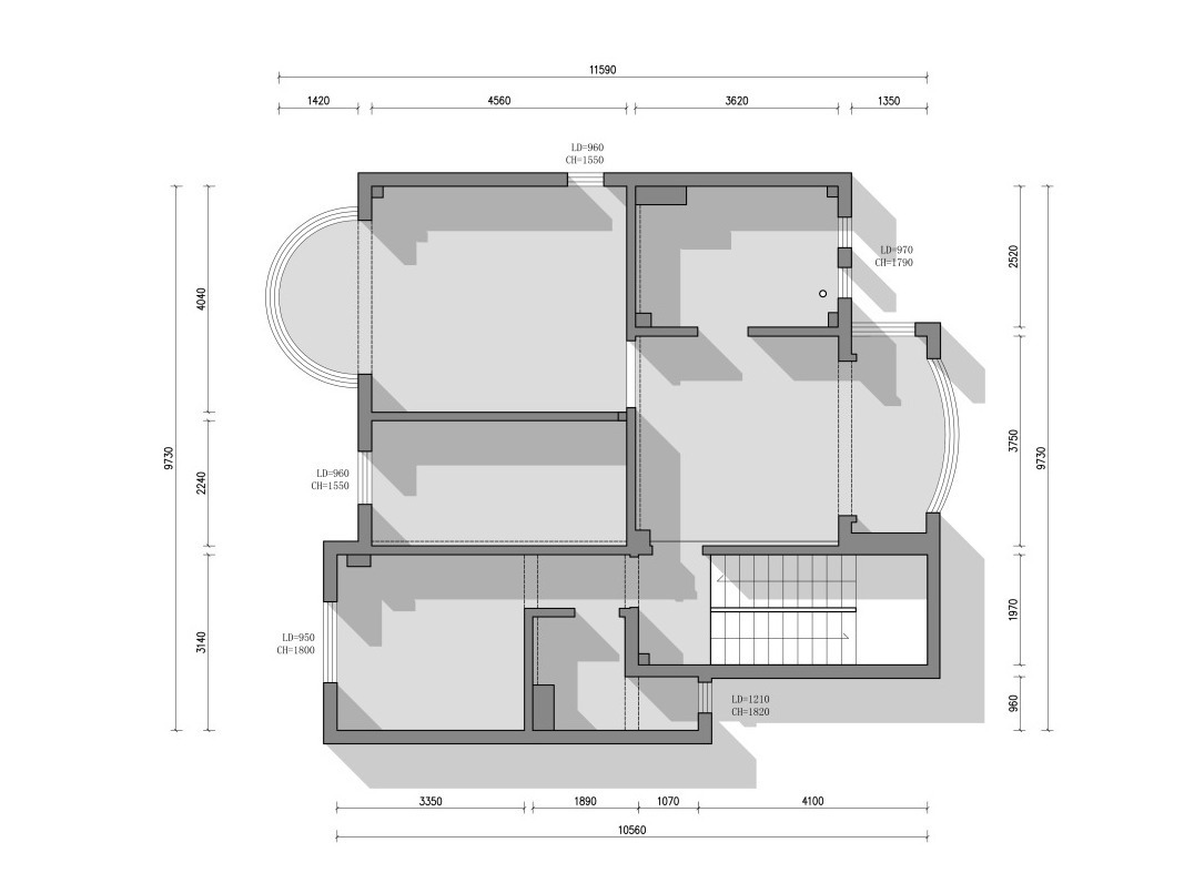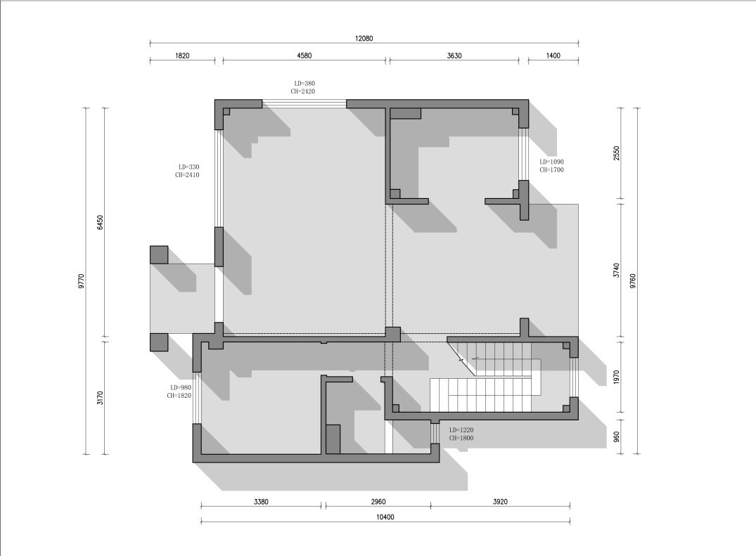 原始户型中,空间分配不是很合理,没有别墅大空间的通透感。